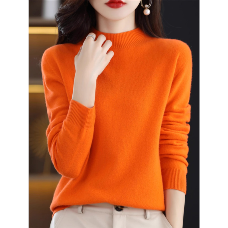 断码秋冬羊绒衫女纯色修身羊绒半高宽松毛衣百搭羊毛打底衫加厚