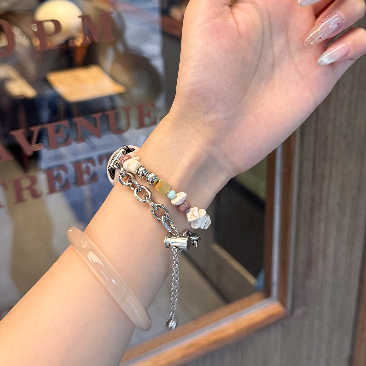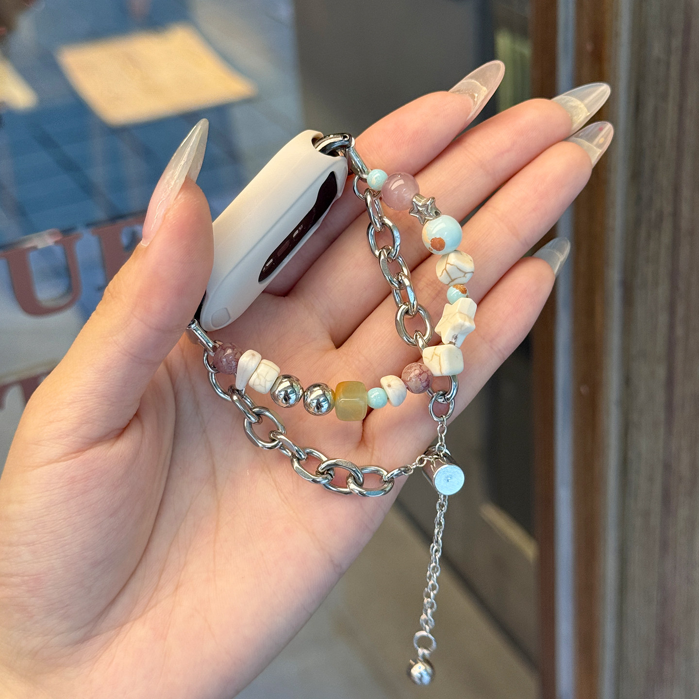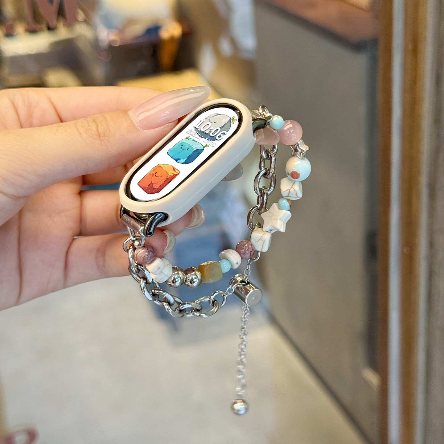 适用小米手环10表带9/8手腕带双层手链夏季新款手环10陶瓷版串珠手表带智能运动数码配件多巴胺星星硅胶粉色