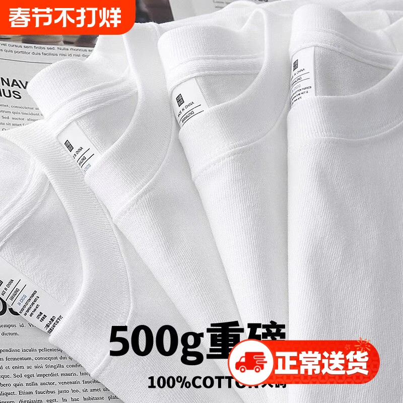 新疆棉 500G重磅纯棉短袖t恤男女美式纯色胖子大码宽松上衣打底衫