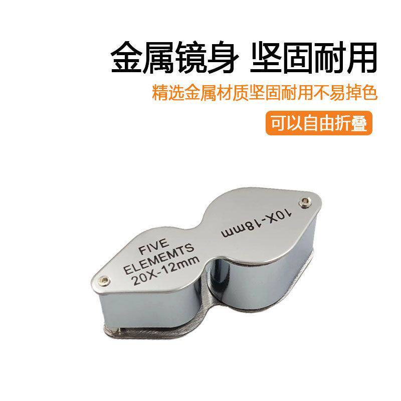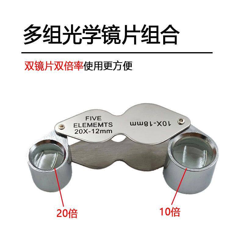 ALDF镜头全金属珠宝鉴定双10光学玻璃倍放大镜折叠式玉石古董倍20