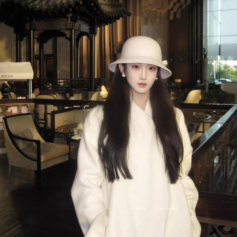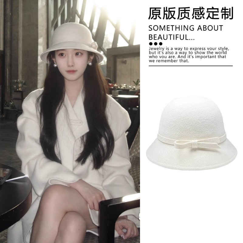 富家千金礼帽英伦风复古气质圆顶帽子女秋冬季保暖法式白色渔夫帽
