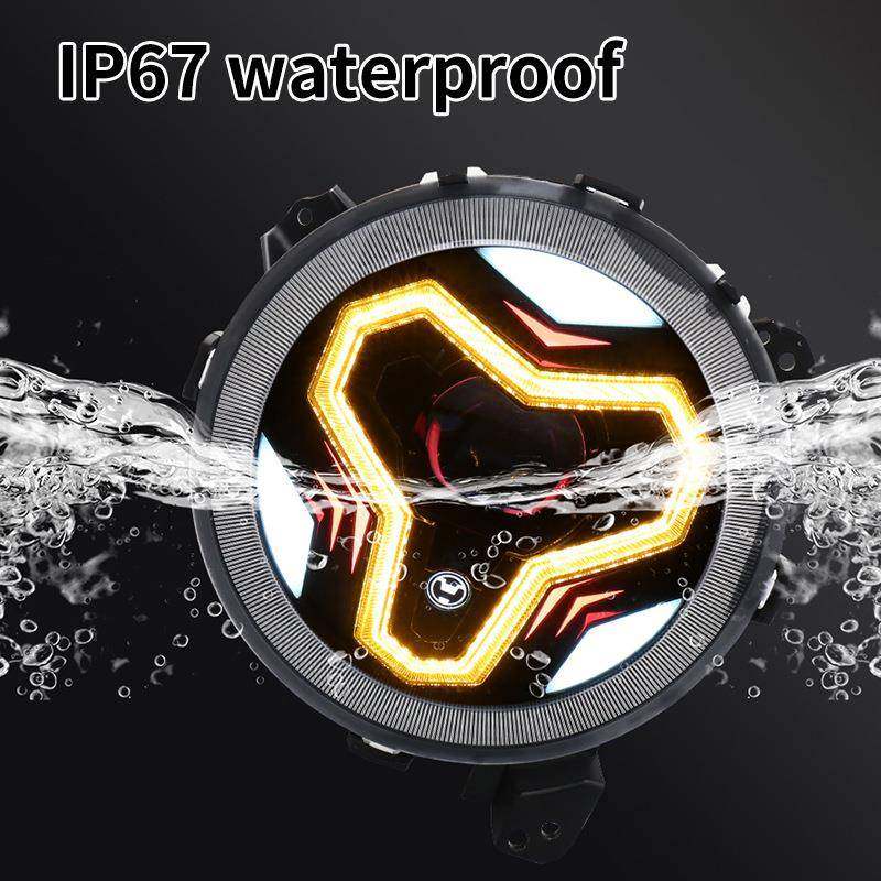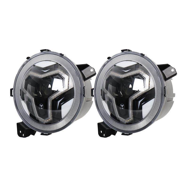 JL牧马人改装LED大灯总成迎宾天使眼功能9寸头灯越野车大灯日行灯