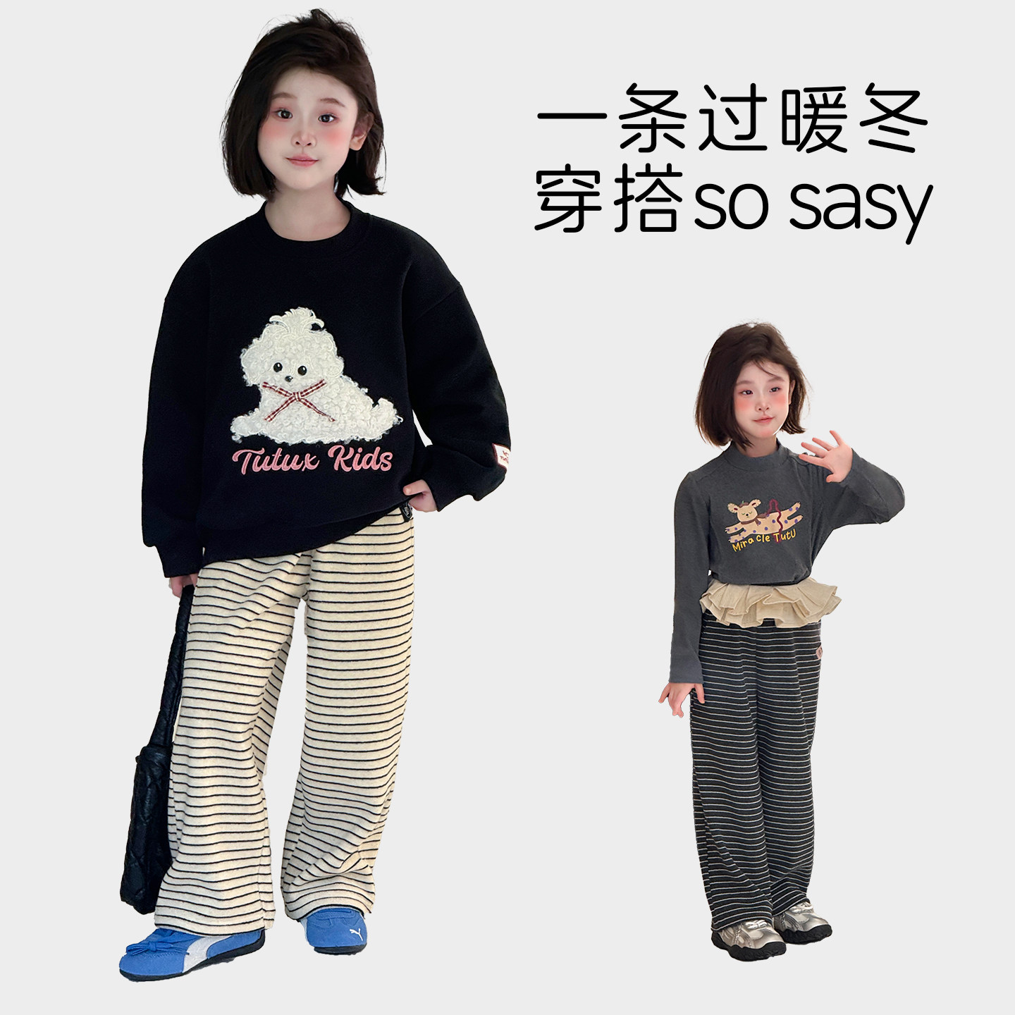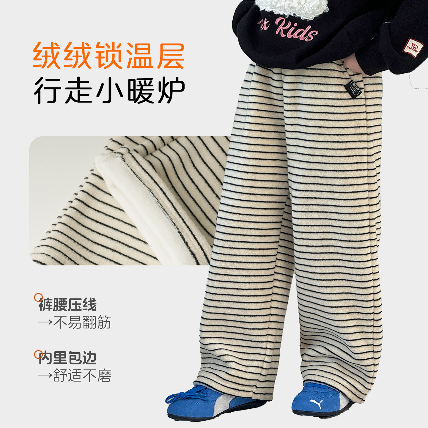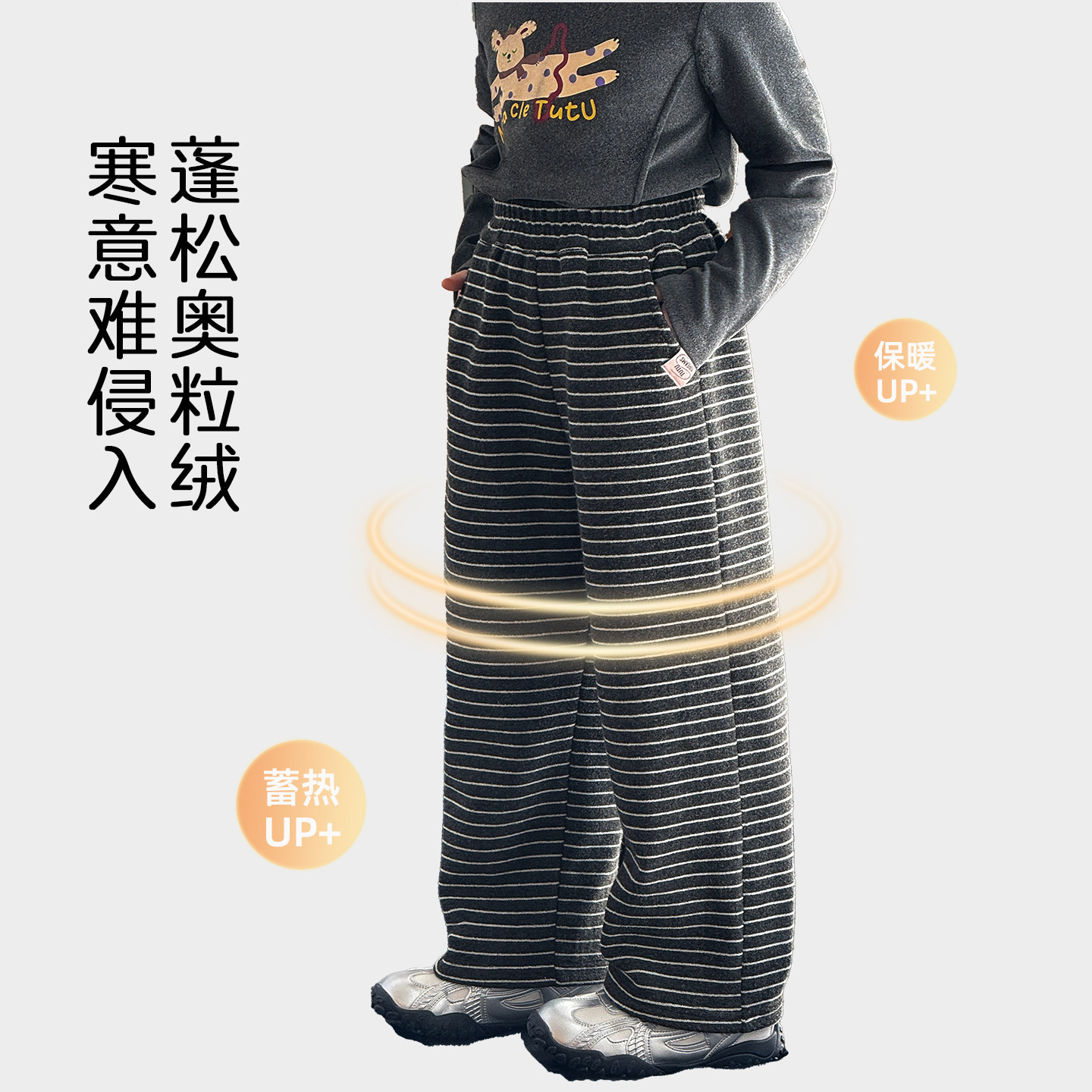 图图小象女童儿童休闲裤2025新款秋冬装百搭条纹加绒保暖毛巾裤