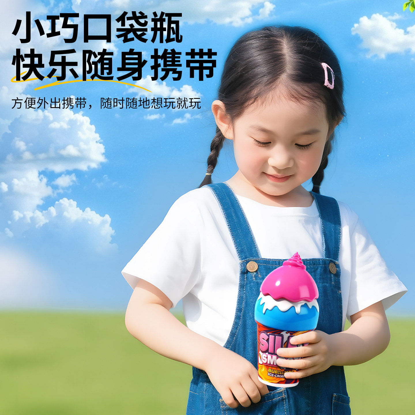 宝宝不洒液冰淇淋泡泡瓶倒置不撒泡泡水儿童手持户外吹泡泡玩具棒