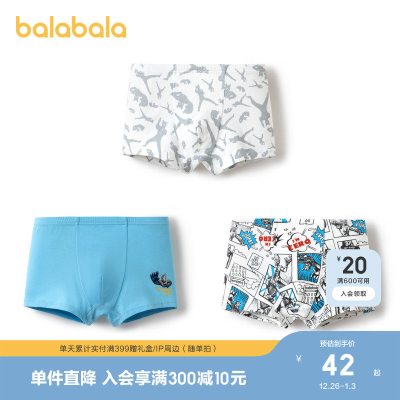 【balaOne】巴拉巴拉儿童内裤棉男童不夹pp抗菌裆四角短裤三条装