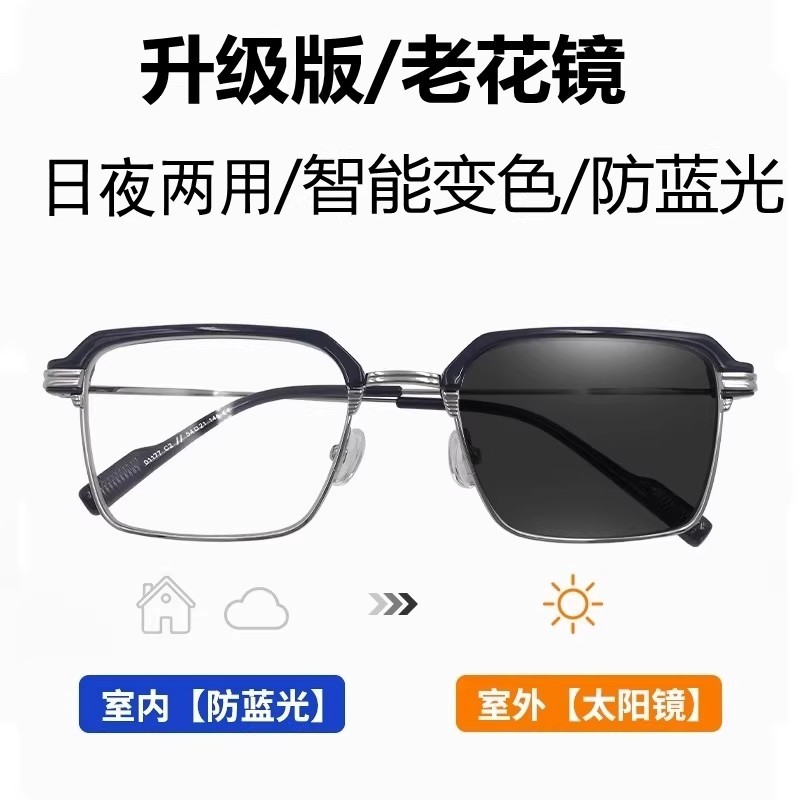 德国变色老花镜智能感光防蓝光抗疲劳防紫外线两用高清眼镜男正品