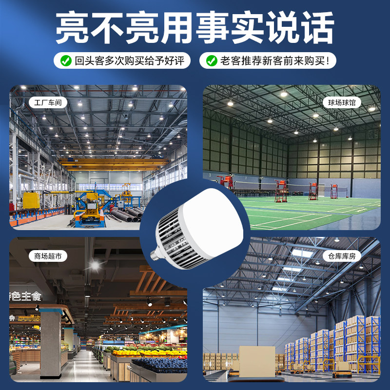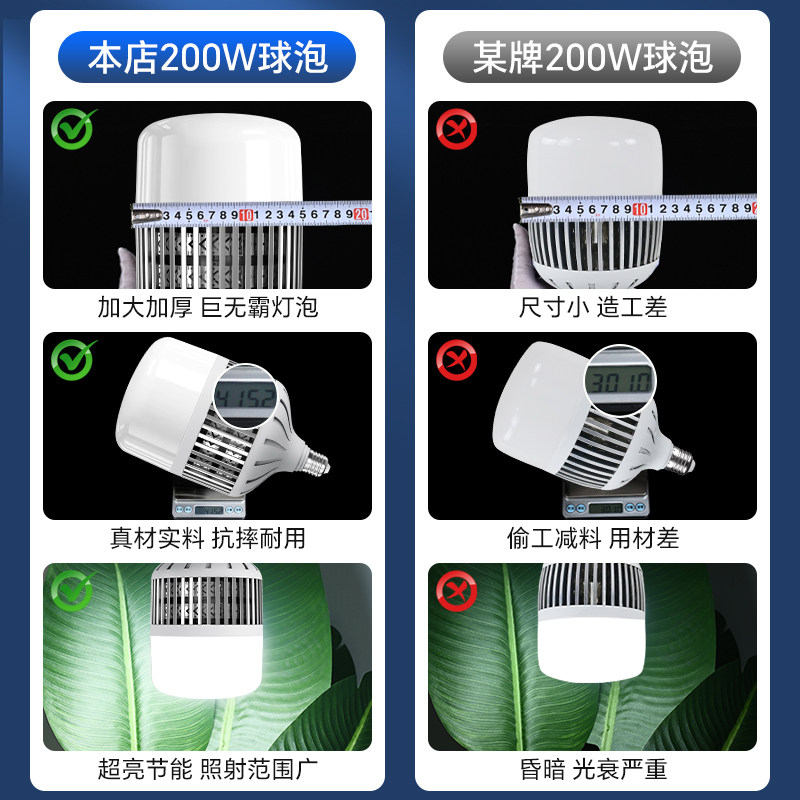 大功率灯泡螺口led节能家用E27超亮照明200W室内白光灯芯寿命车间