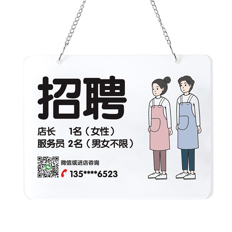 店员招聘挂牌定制k聘招募牌指示牌提示牌服务工作人员标志店内广