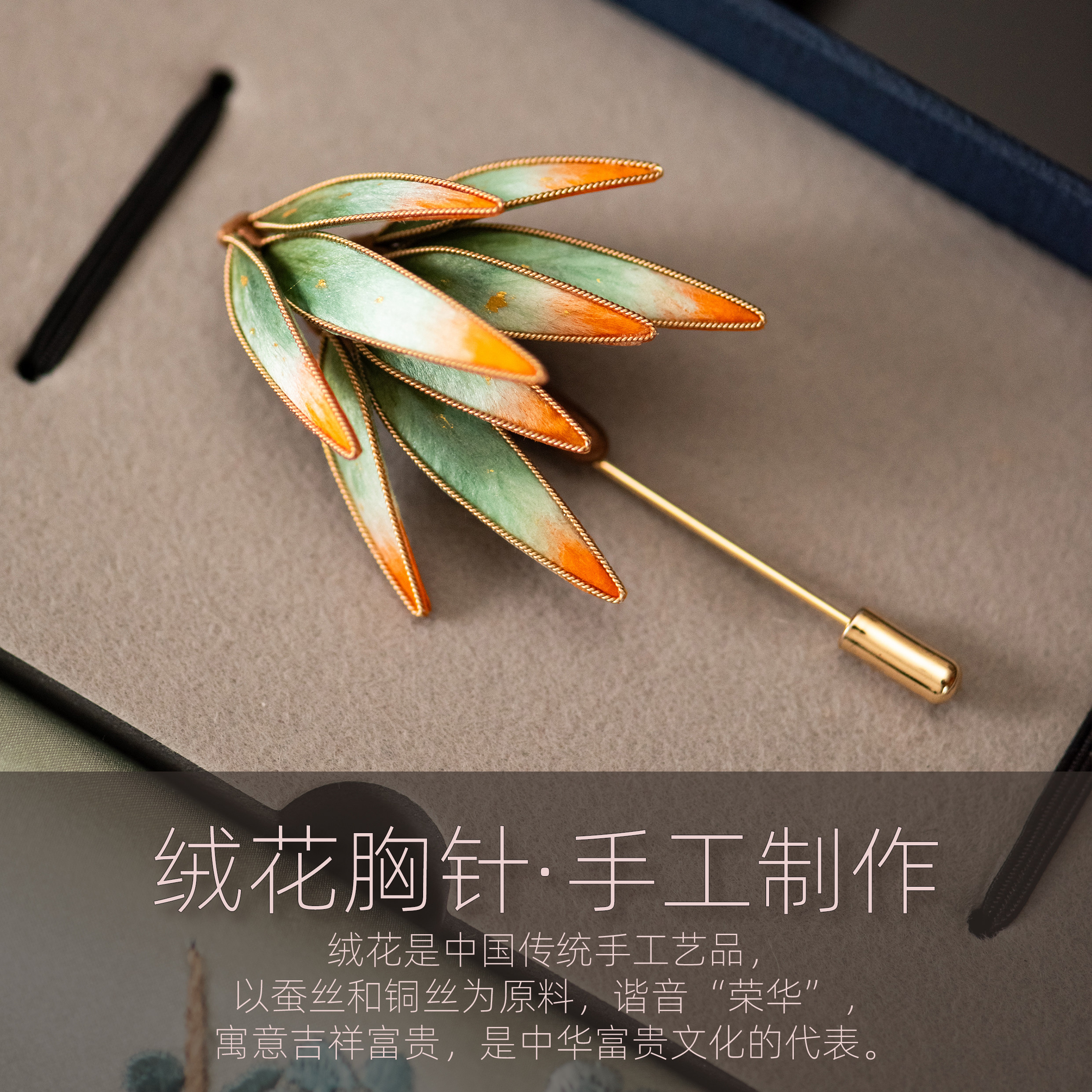 苏绣真丝围巾女绒花胸针礼盒中国风商务伴手礼桑蚕丝丝巾送妈妈
