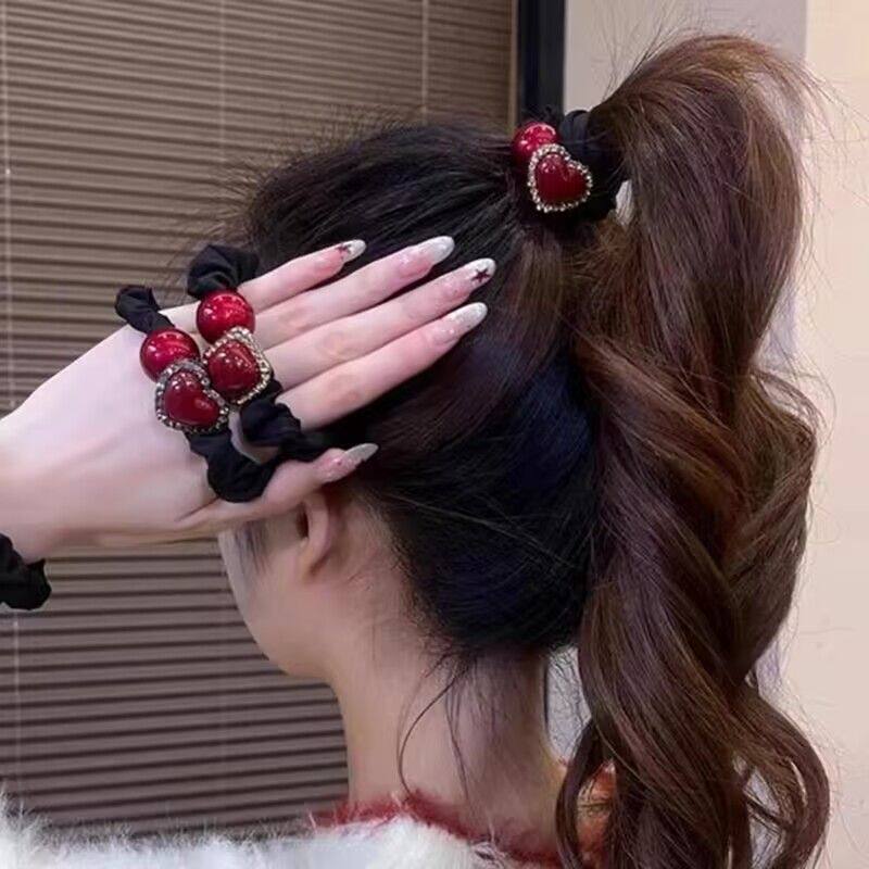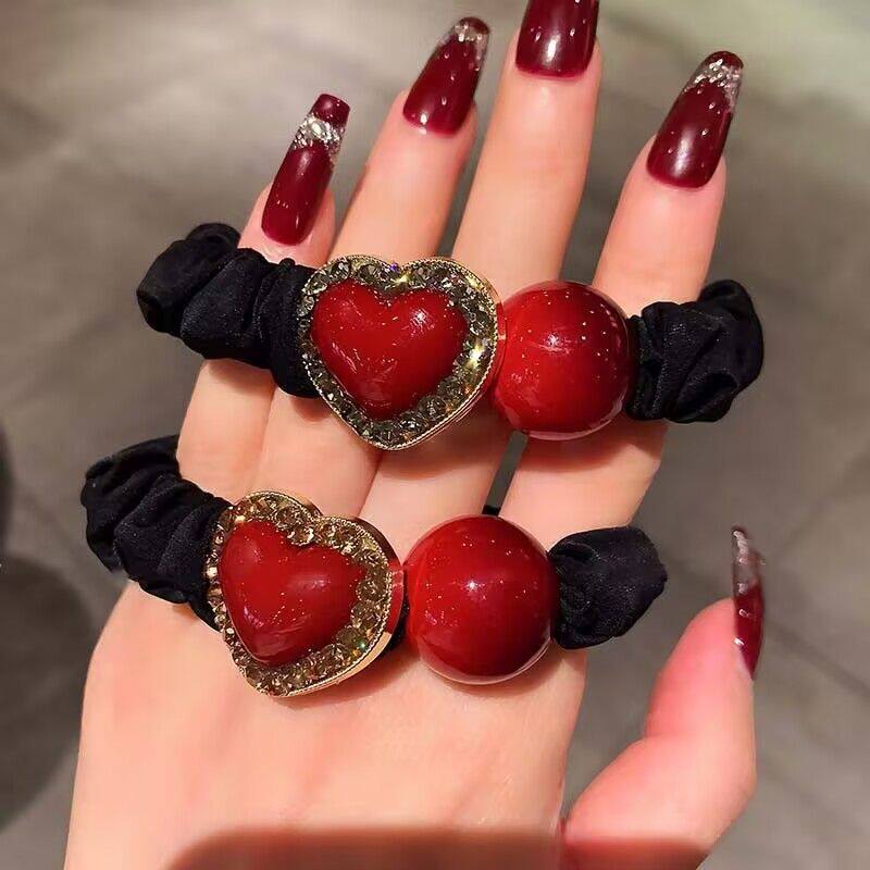 韩版高档红色爱心小肠发圈女网红扎丸子头马尾发绳2026年新款头饰
