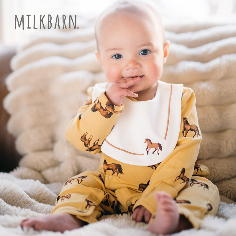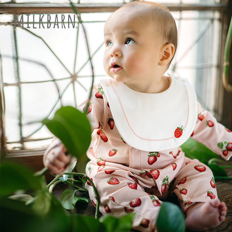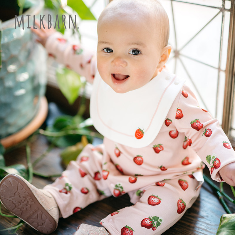 Milkbarn2026春季新品新生婴儿围兜长袖连体服宝宝爬服哈衣小月龄