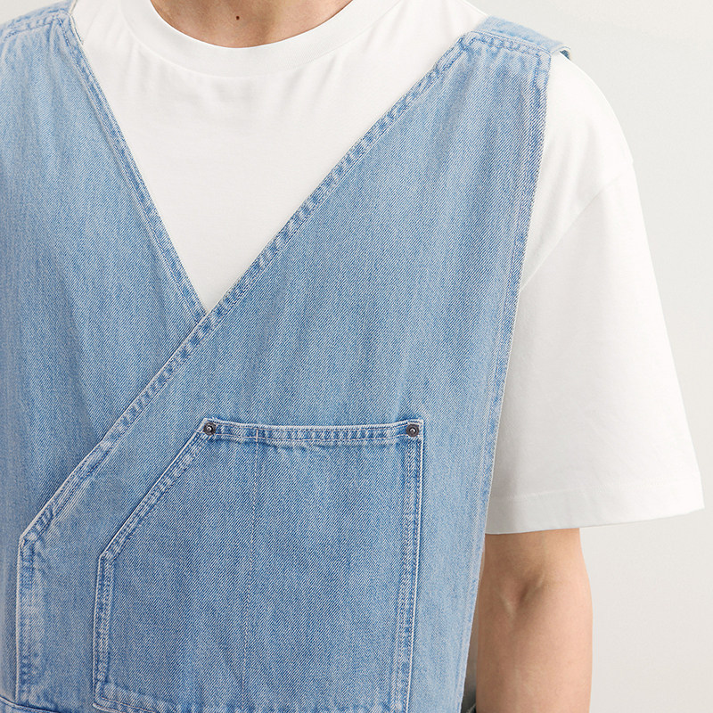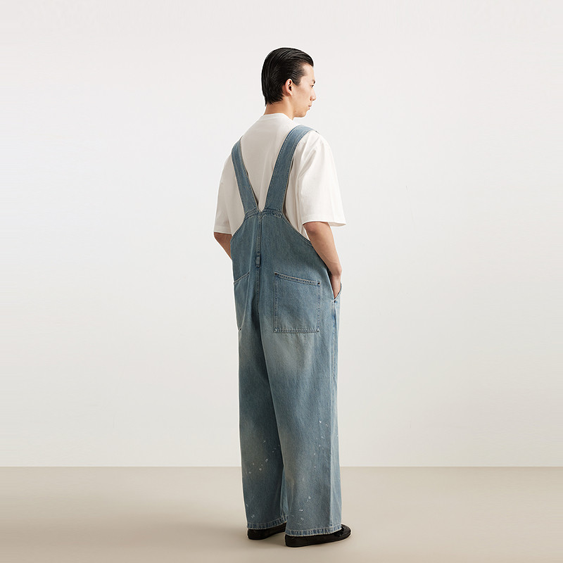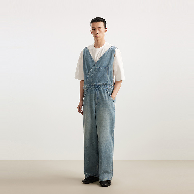 [含汉麻]速写男装早春新款男士牛仔连体背带裤棉麻工装感潮流