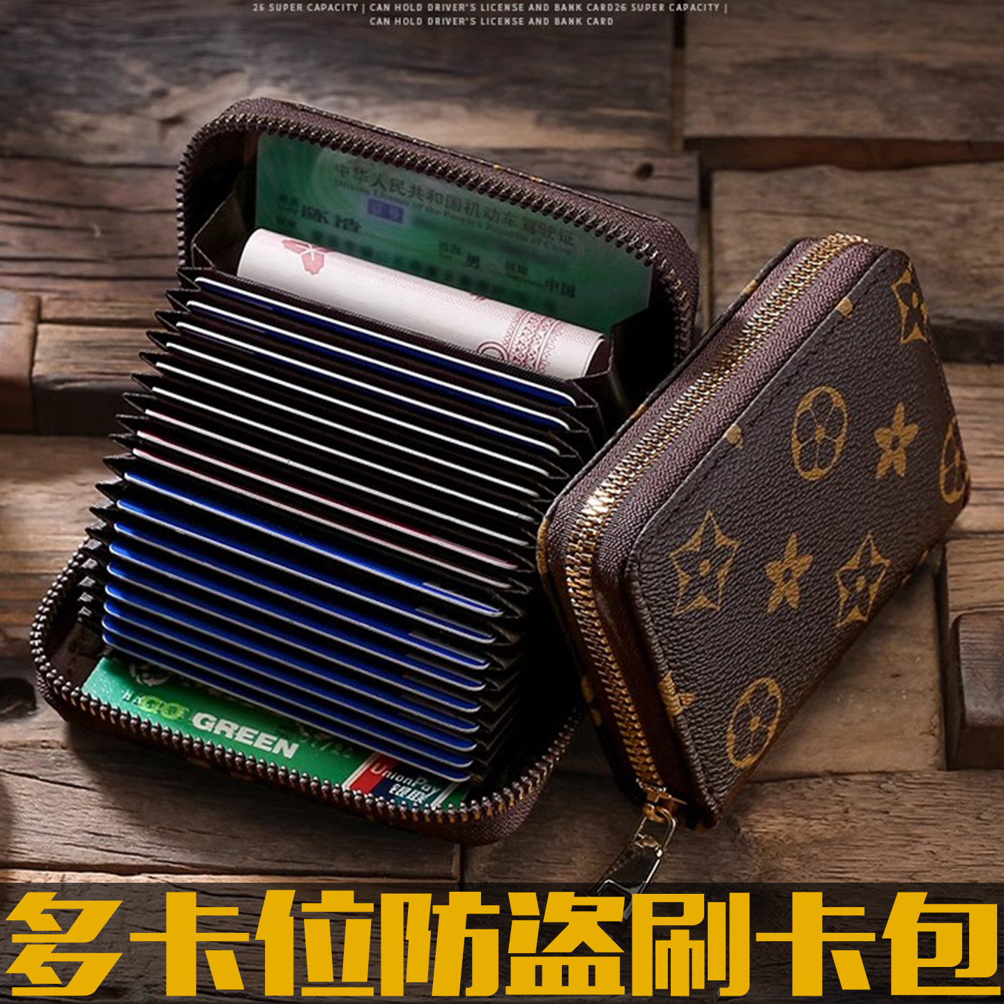 新款卡包女士多卡位大容量防消磁防盗刷高档拉链证件驾驶证卡片包