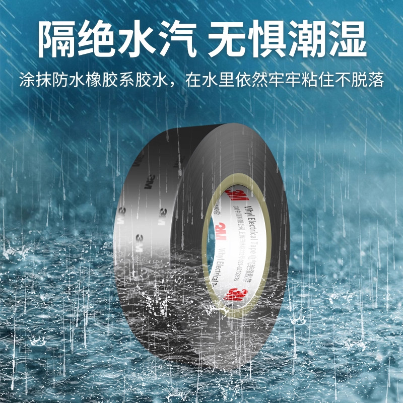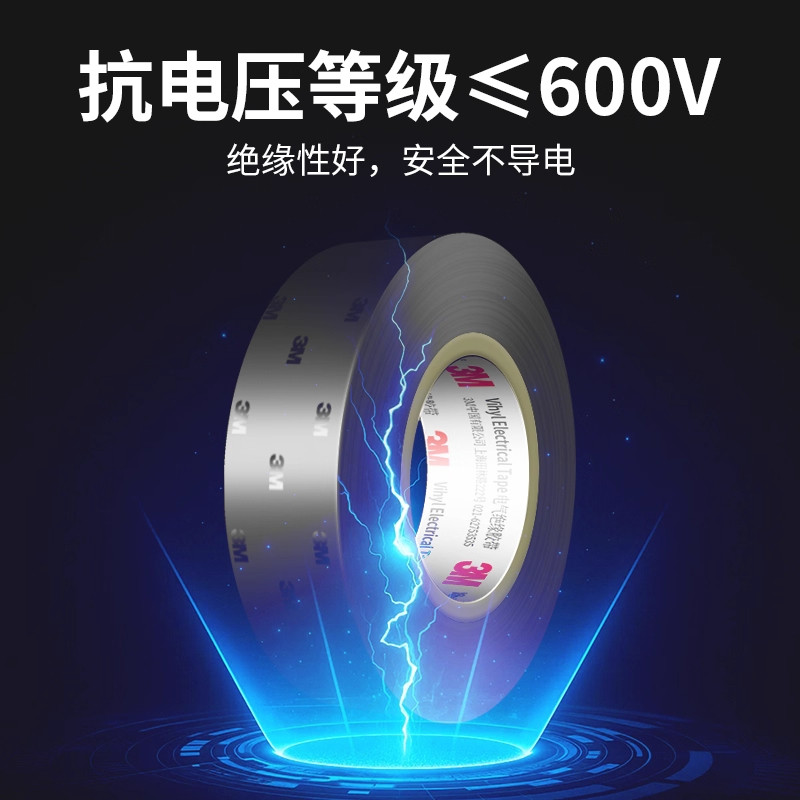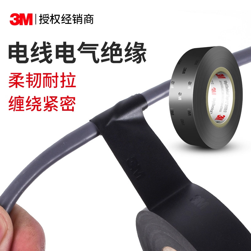 3M170黑色PVC绝缘胶布耐高温防水防潮阻燃家用线束修复捆扎装修电路电线数据线电器充电线维修保护电工胶带