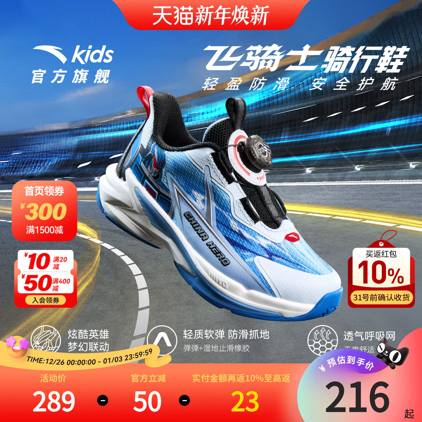 安踏儿童男童飞骑士平衡车鞋2025秋季新款小童跑鞋纽扣运动鞋专业