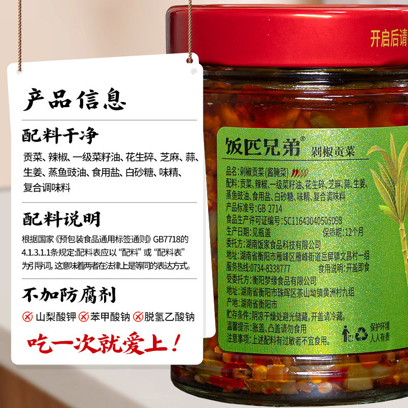 饭匹兄弟香辣贡菜剁椒脆椒湖南特产辣椒酱下饭菜咸菜榨菜即食辣味