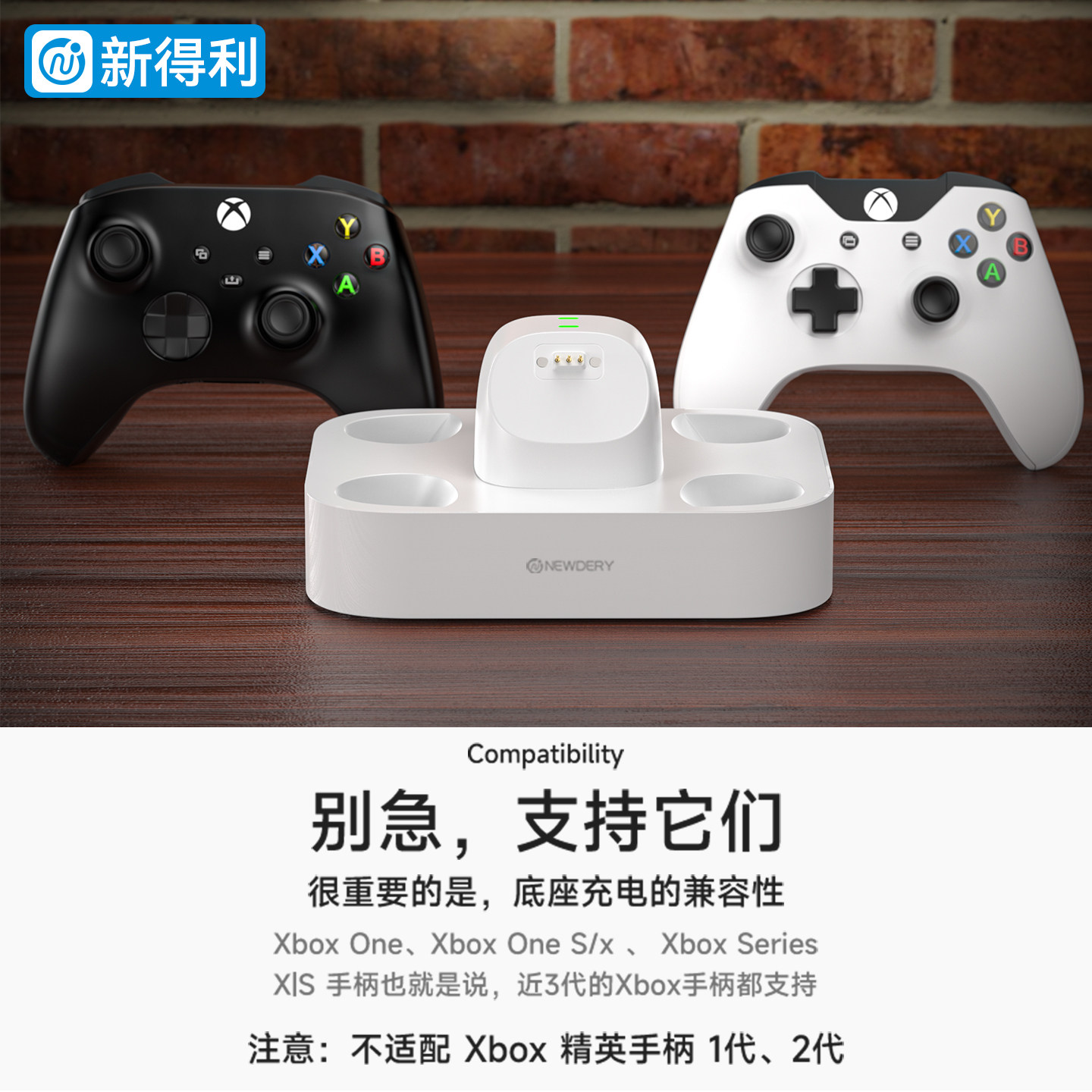 新得利Xbox手柄电池微软原装Series双手柄充电底座Xbox One手柄座充X/S控制器收纳支架大容量电池盖周边配件