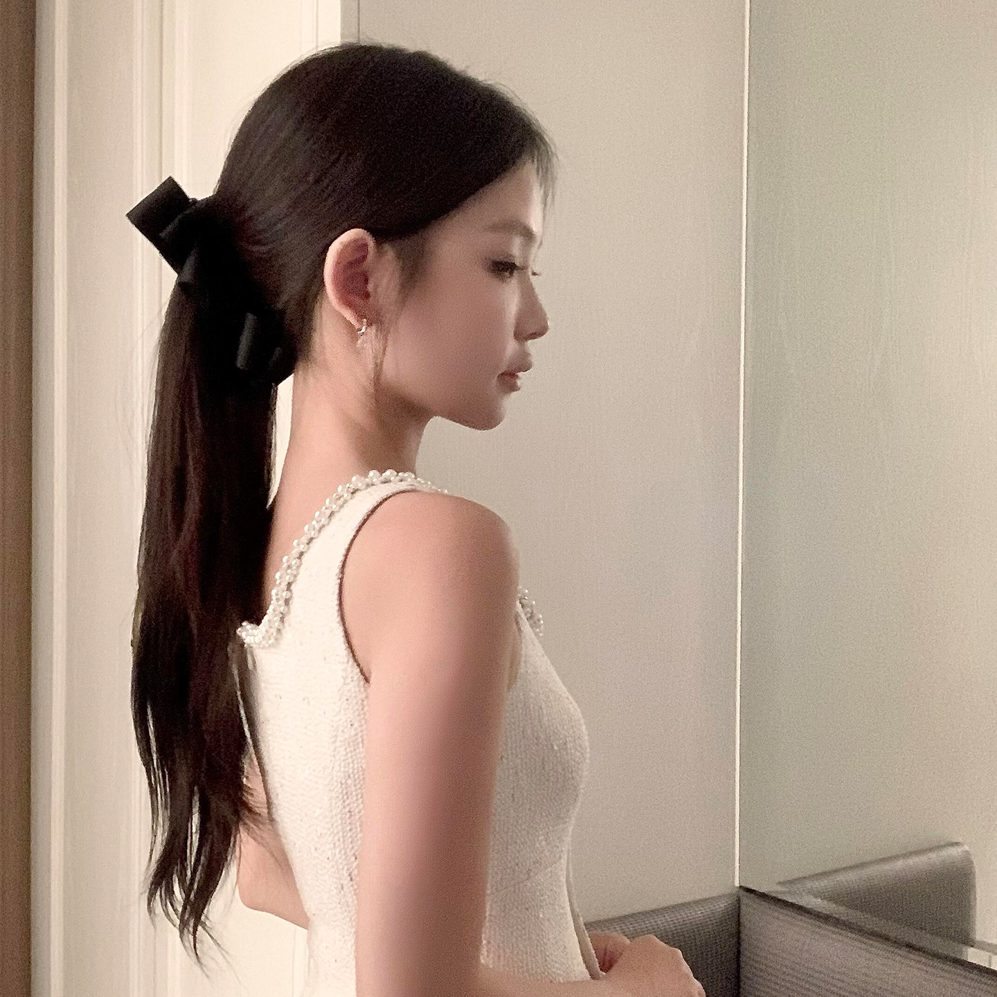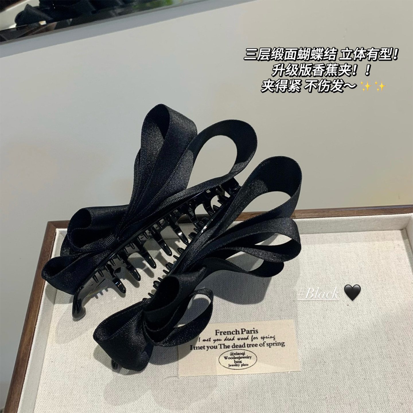 韩系缎面黑色蝴蝶结香蕉夹女后脑勺抓夹马尾夹竖夹头饰发卡发饰