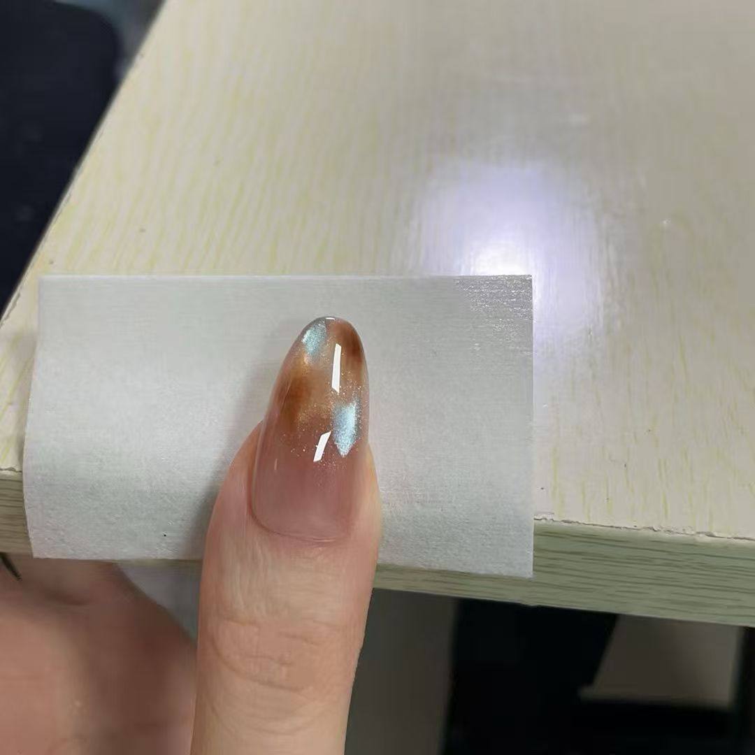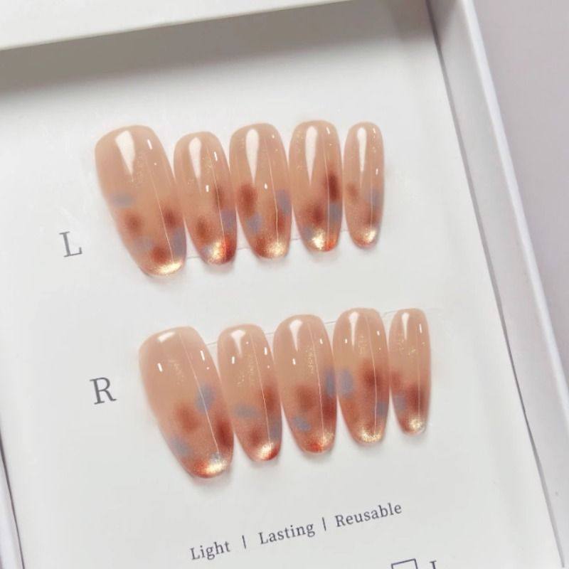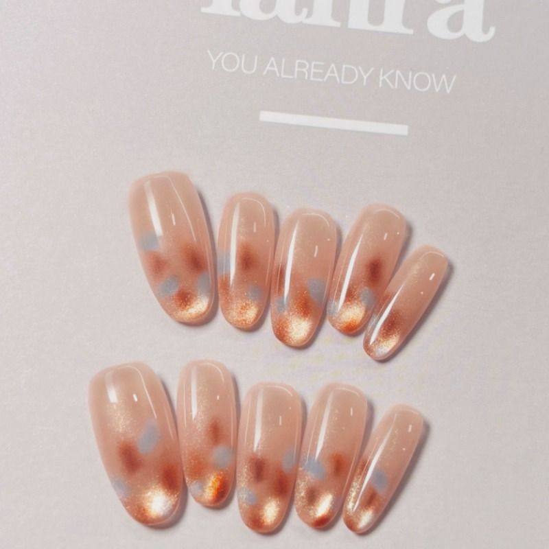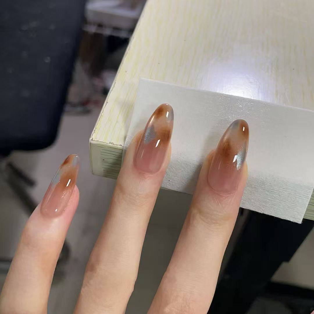 秋冬晕染琥珀猫眼显白美拉美甲穿戴甲手工学生中长款豆豆椭圆黑色