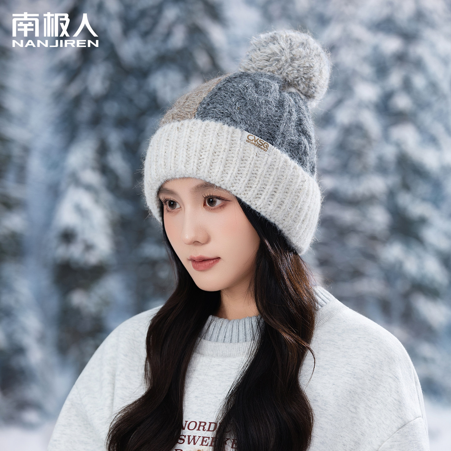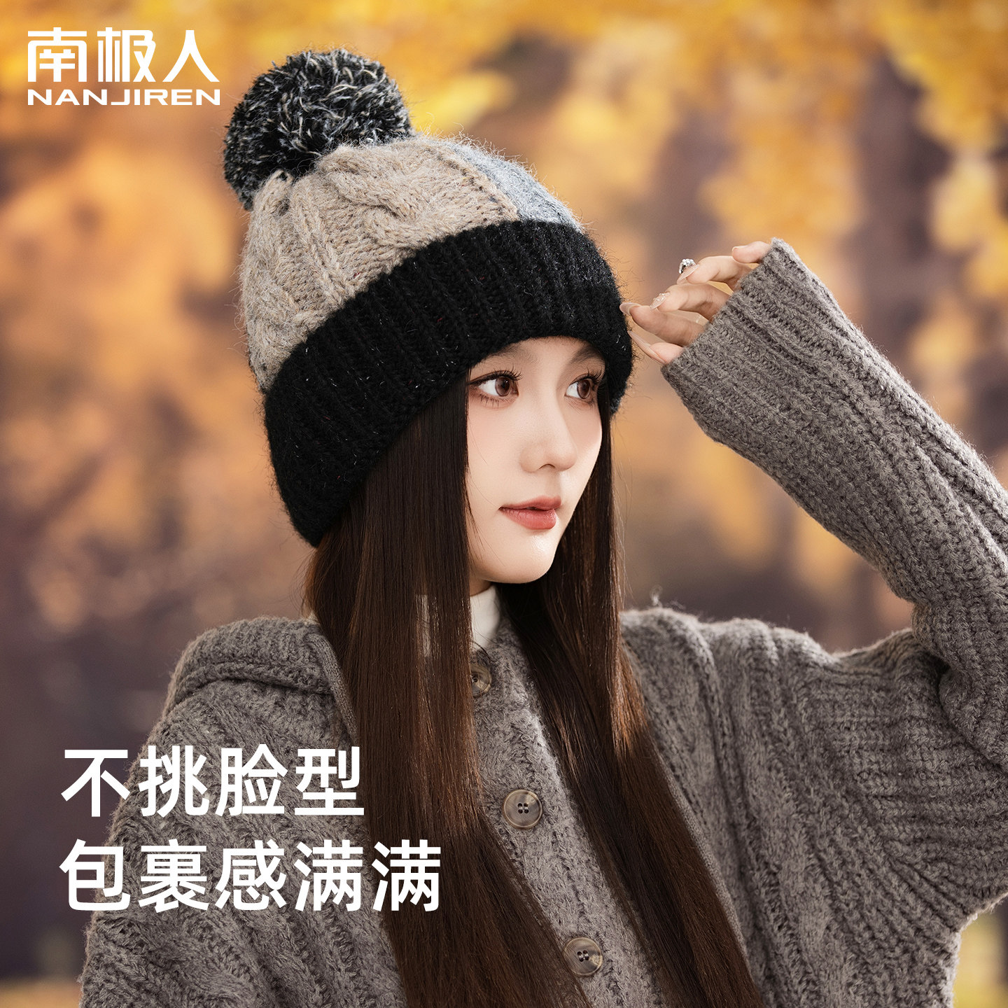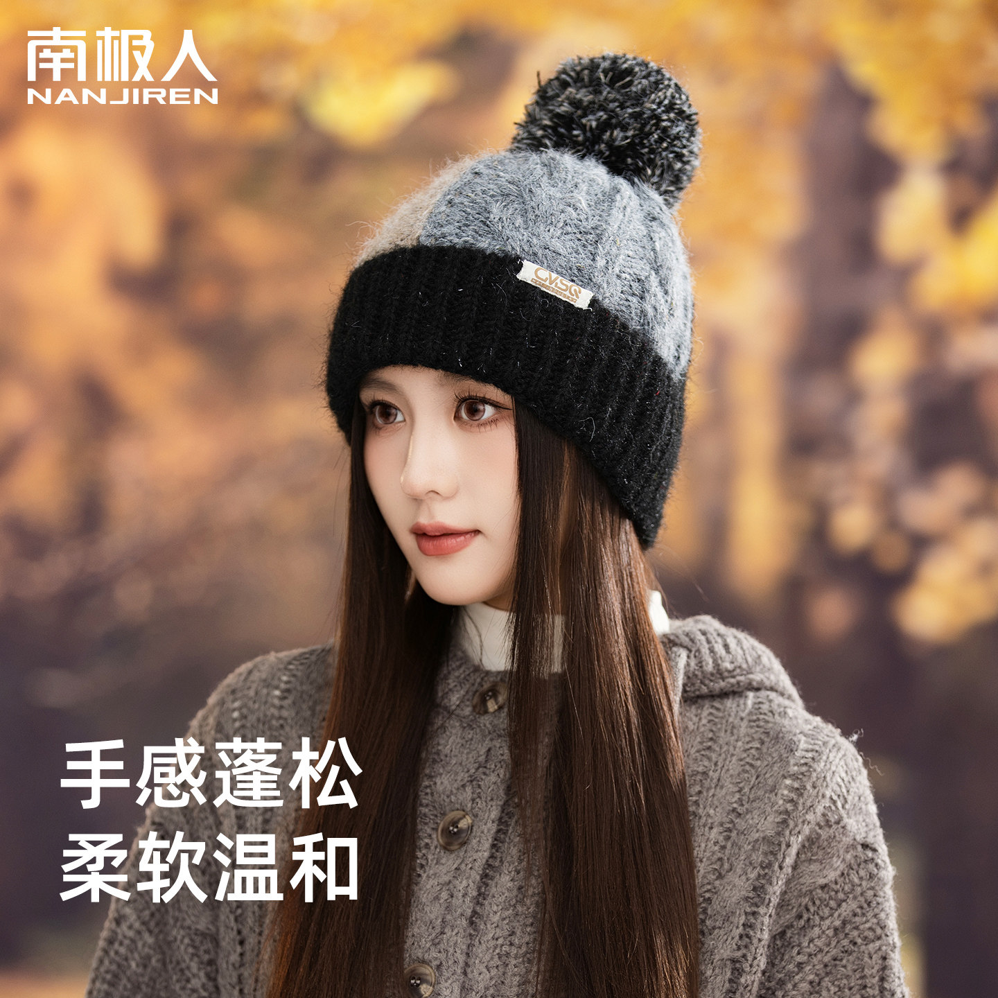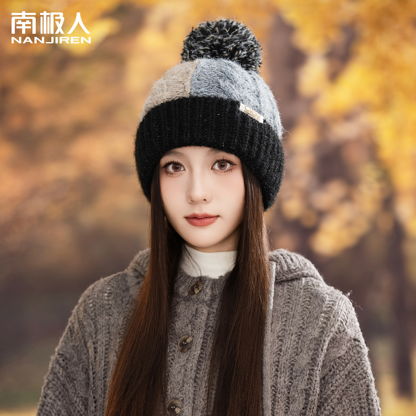 2025年新款针织帽子女冬季保暖加绒加厚骑行户外护耳包头帽拼色J
