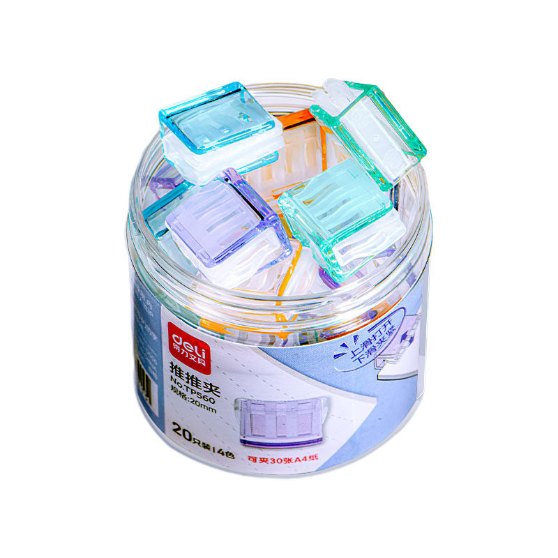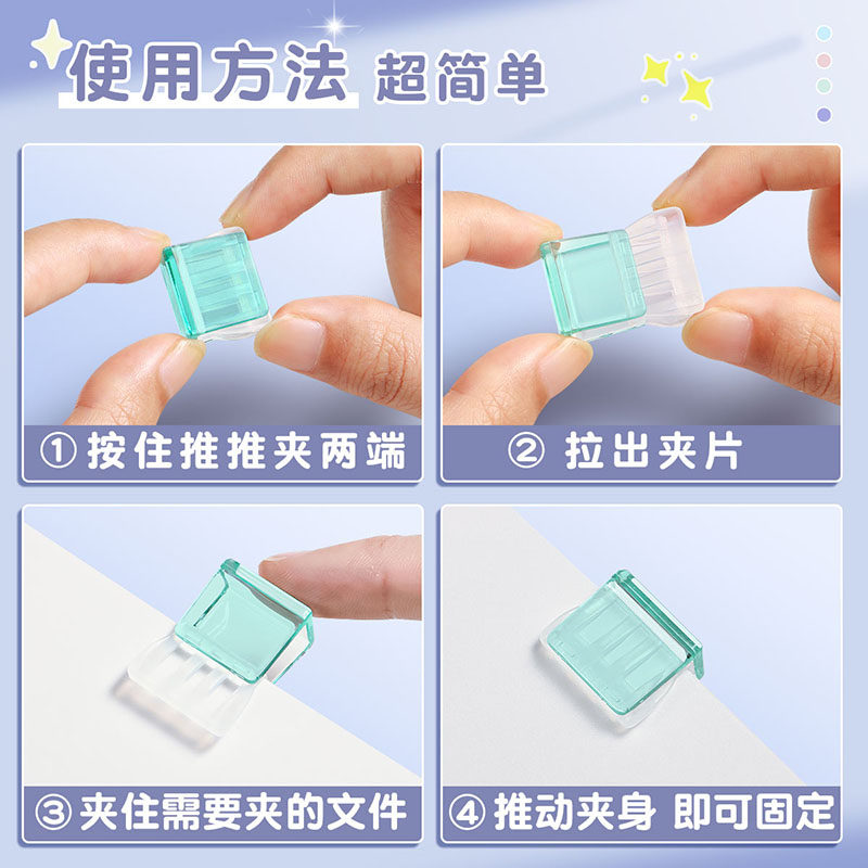 得力推推夹文件小夹子文具推夹器固定试卷神器订书机装订金属钉票据书本纸张办公用品书助推燕尾透明补充工具