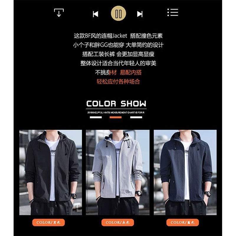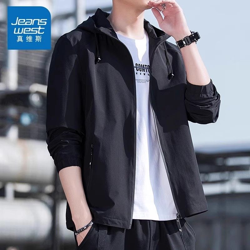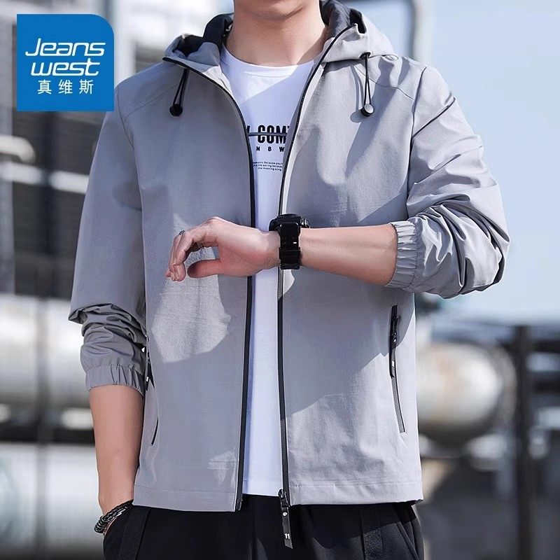 真维斯连帽夹克男2026秋冬休闲外套运动男上衣服潮防风加绒蓝色
