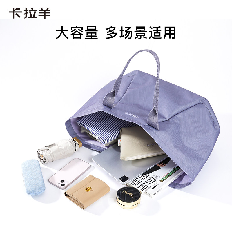 卡拉羊大容量多功能轻便托特包简约可折叠时尚休闲拎包纯色