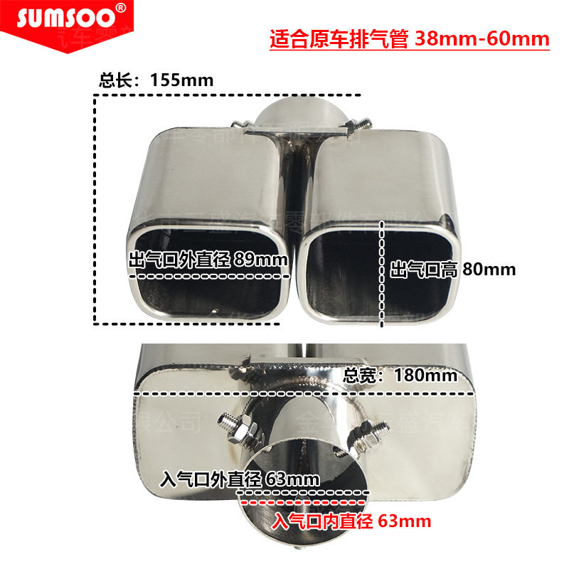 通用双出尾喉汽车不锈钢排气管一出二尾咀双出方口尾喉方管尾喉