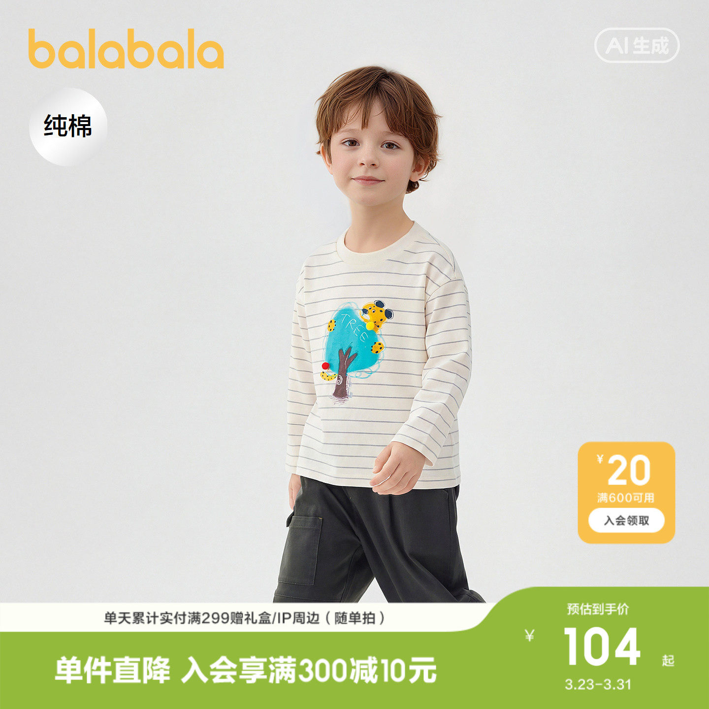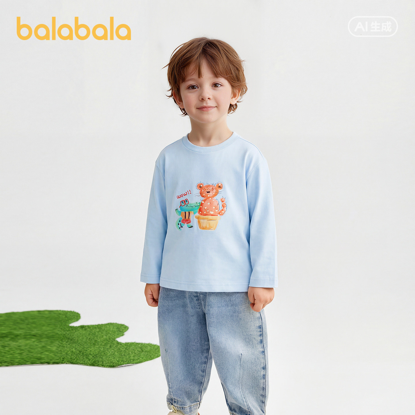 【商场同款】巴拉巴拉儿童长袖t恤男童2026年新款春装艺术感上衣