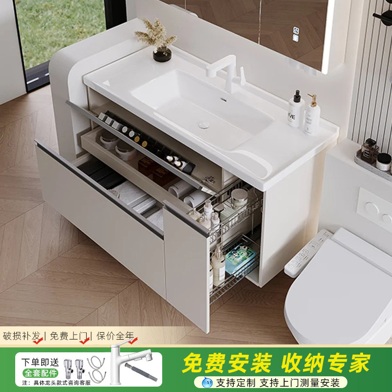 太空铝蜂窝浴室柜组合陶瓷一体盆侧边柜收纳洗漱台卫生间洗手盆柜