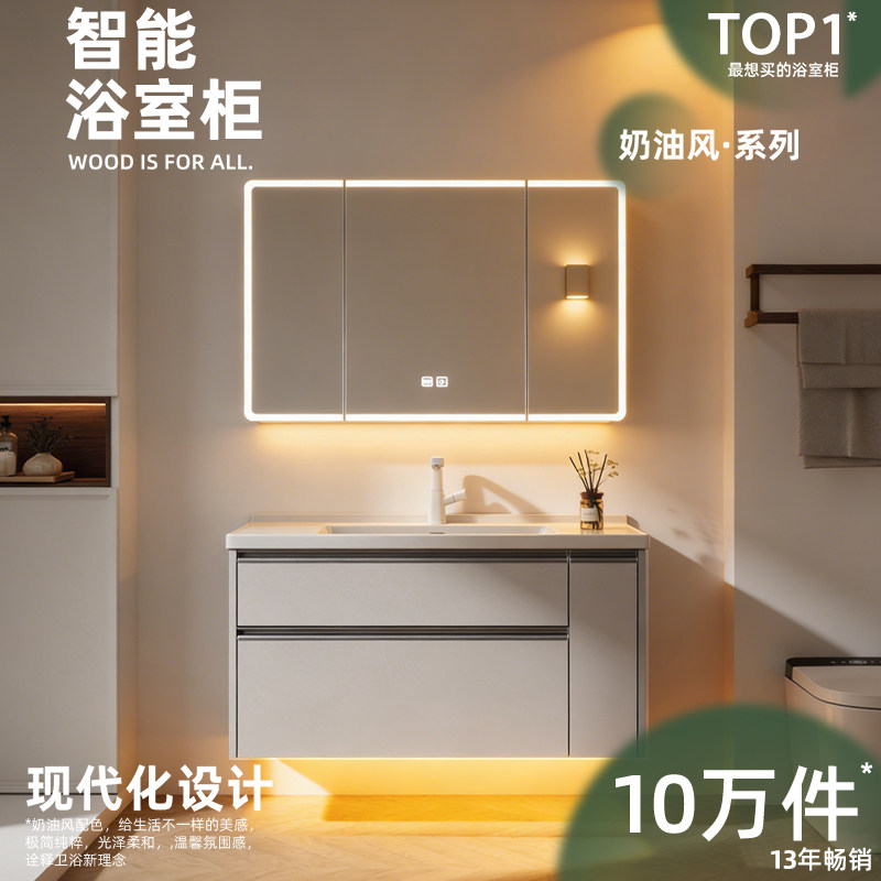 欧派陶瓷一体盆浴室柜组合现代简约卫生间原木风洗漱台洗脸台盆柜