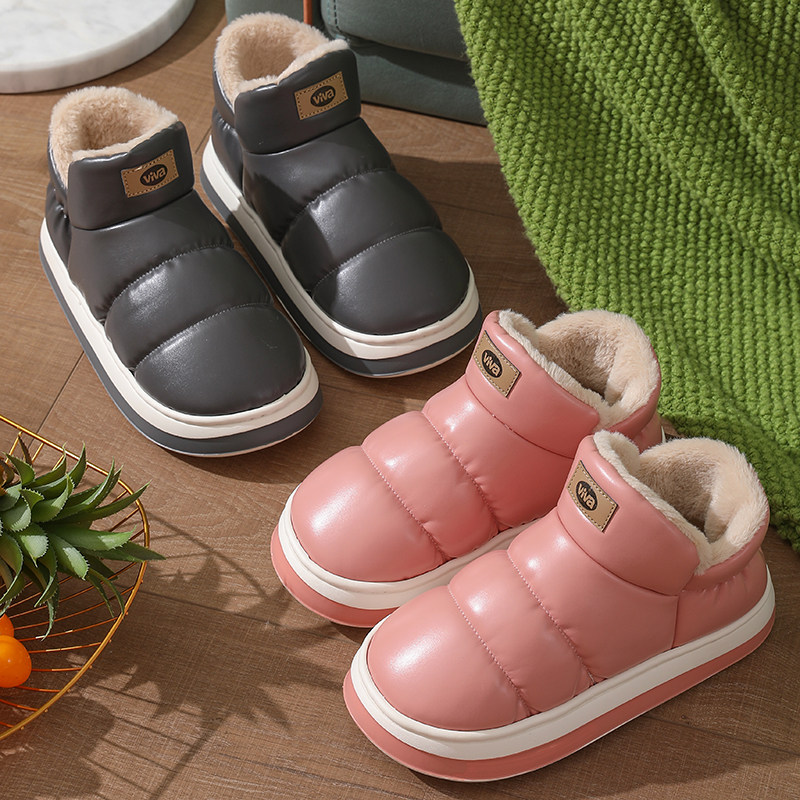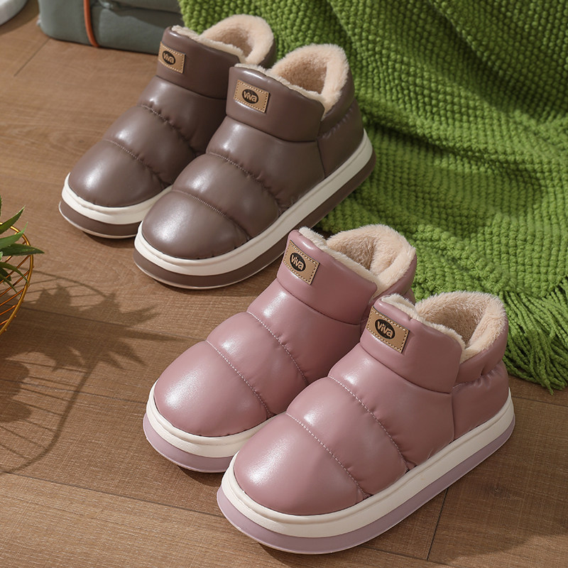高帮棉拖鞋女冬季加厚加绒棉鞋男皮款防滑防水棉鞋家居鞋包跟外穿