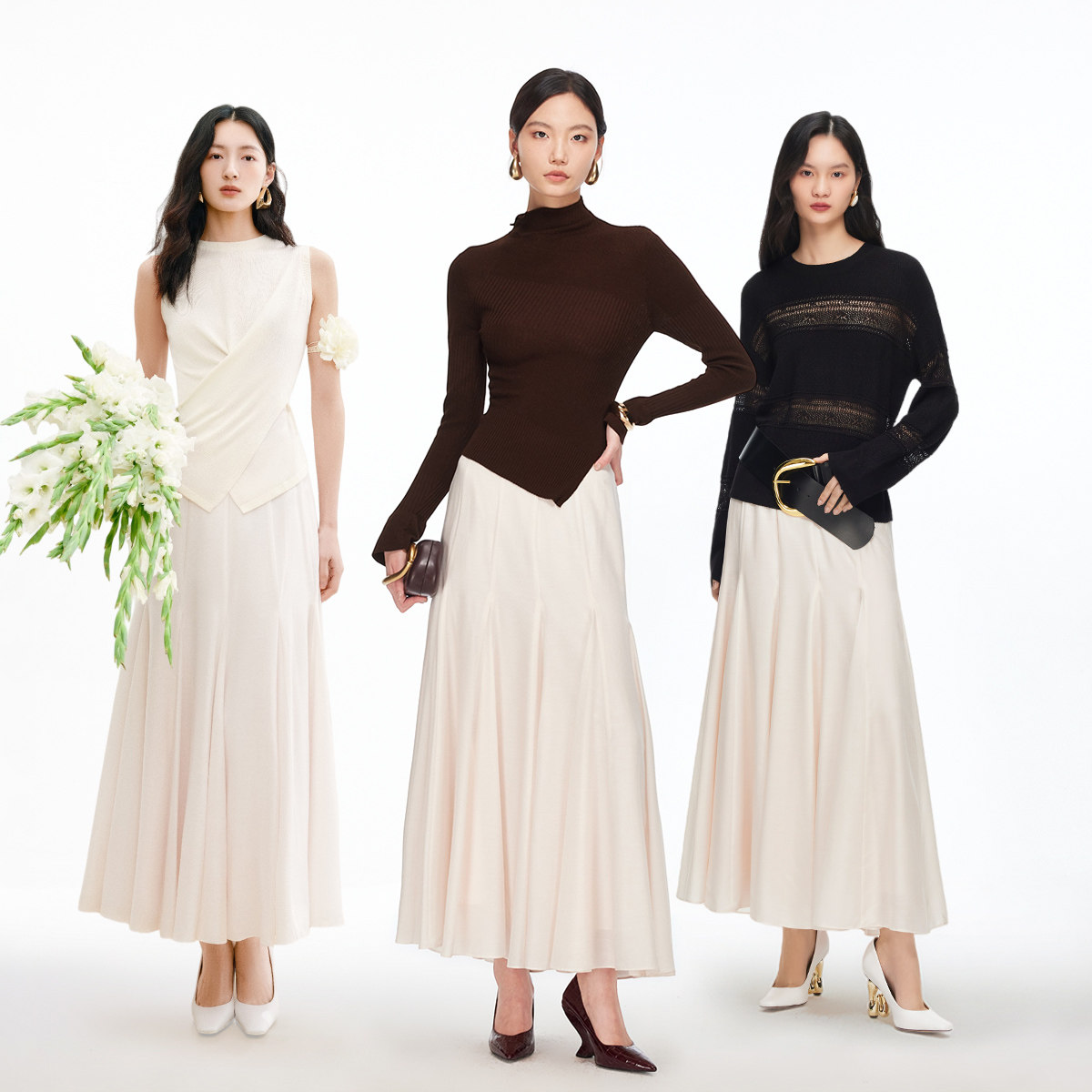【所有女生的衣橱直播间】极尔斯 斜纹半身裙/高领T恤