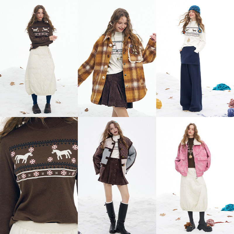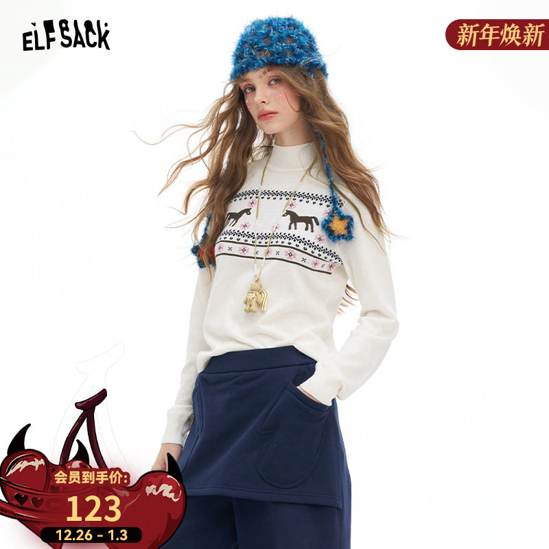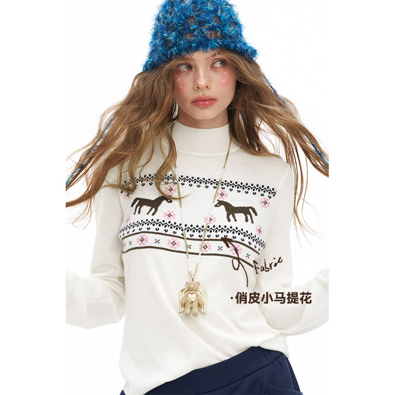 妖精的口袋小马提花修身高领针织衫女2025年冬季新款绵羊毛打底衫