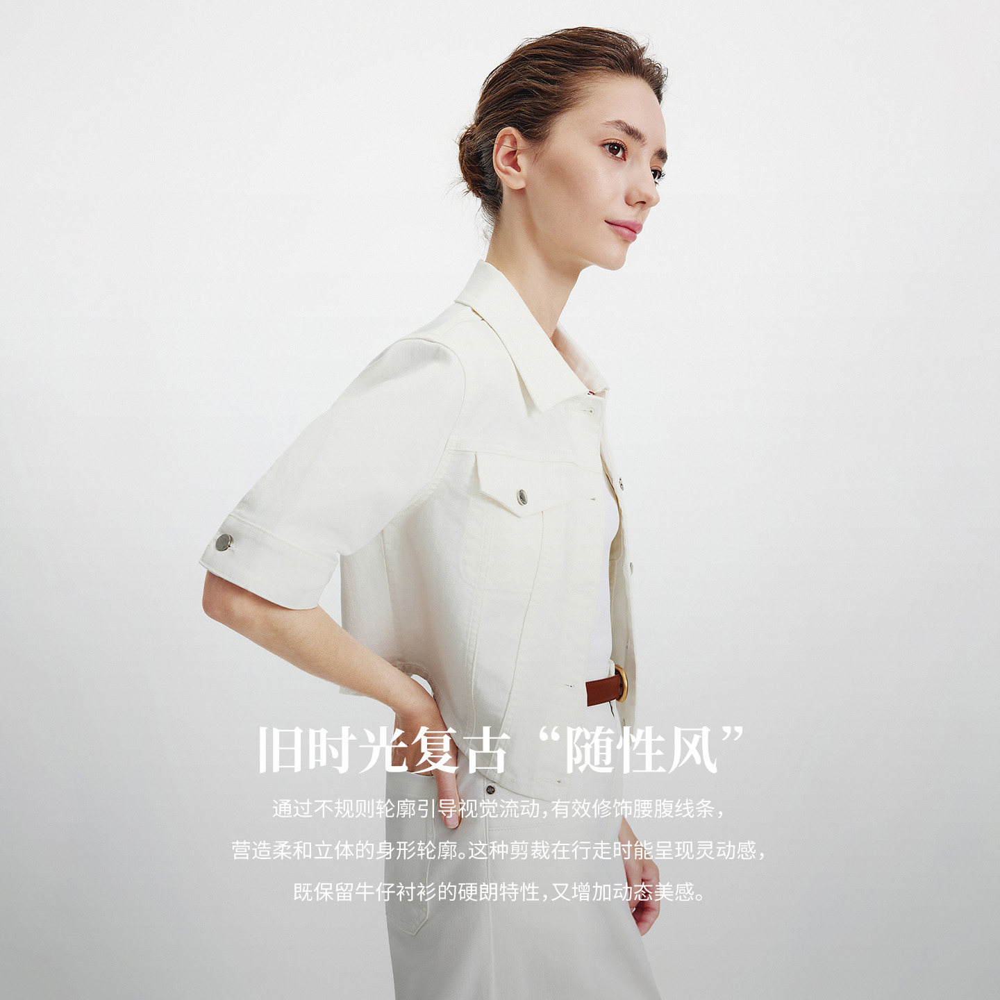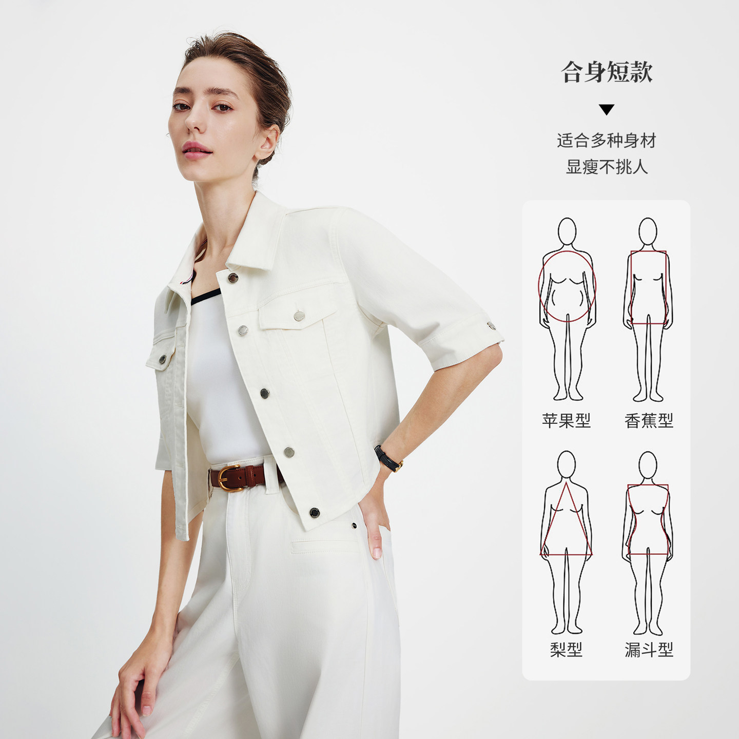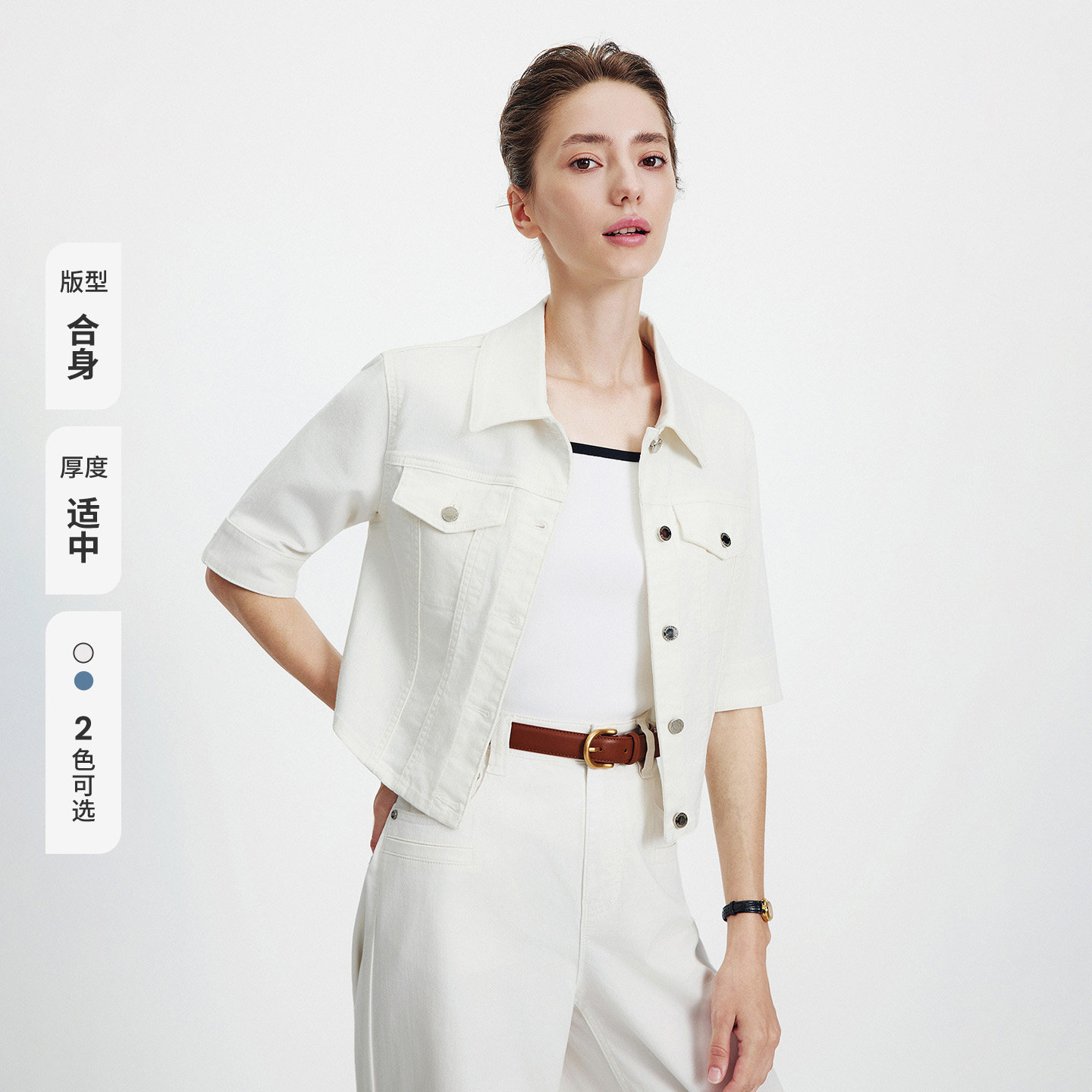 [三防]Navigare意大利小帆船白色牛仔短外套女2026春夏五分袖上衣