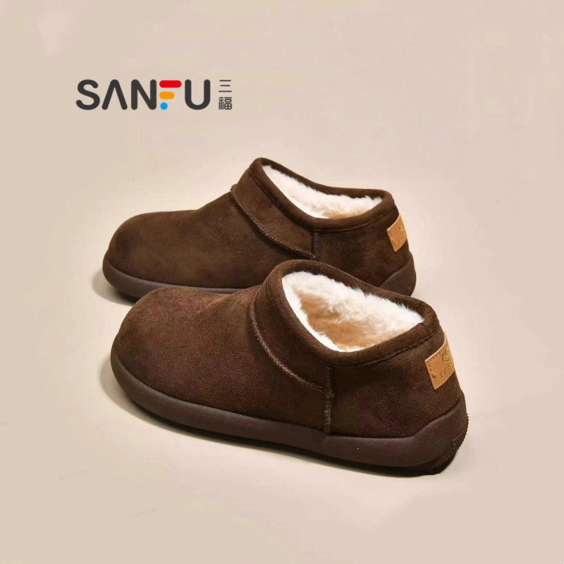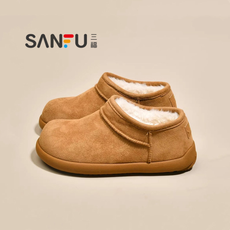 三福真皮小土豆雪地靴勃肯鞋女2025冬季新款厚底加绒加厚保暖棉鞋