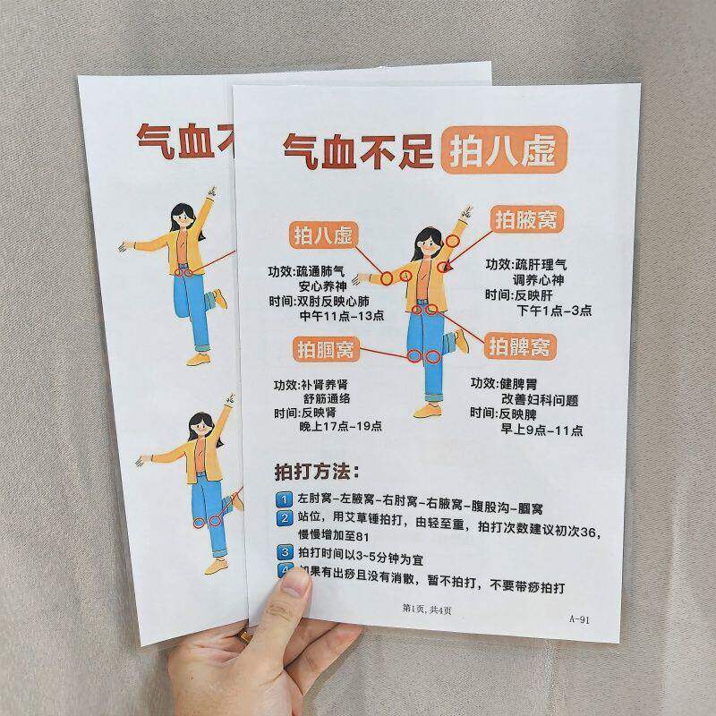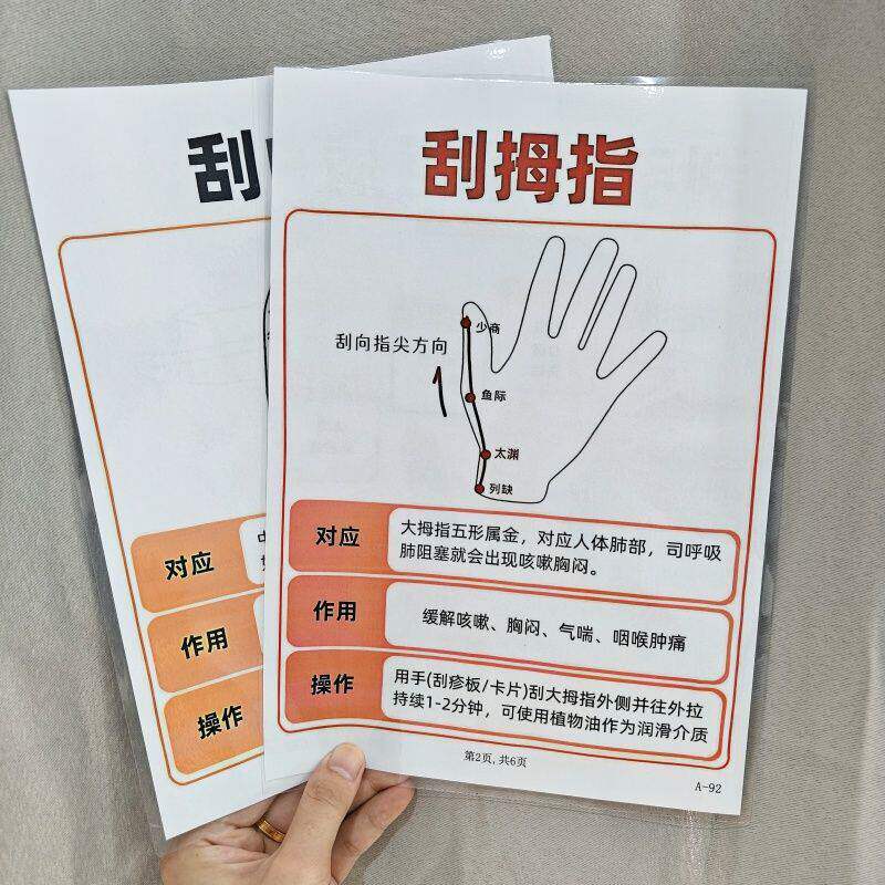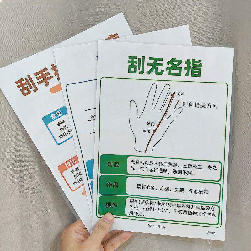 刮手指6条经络疏通五脏+气血不足拍八虚人体12穴位塑封挂图认知卡