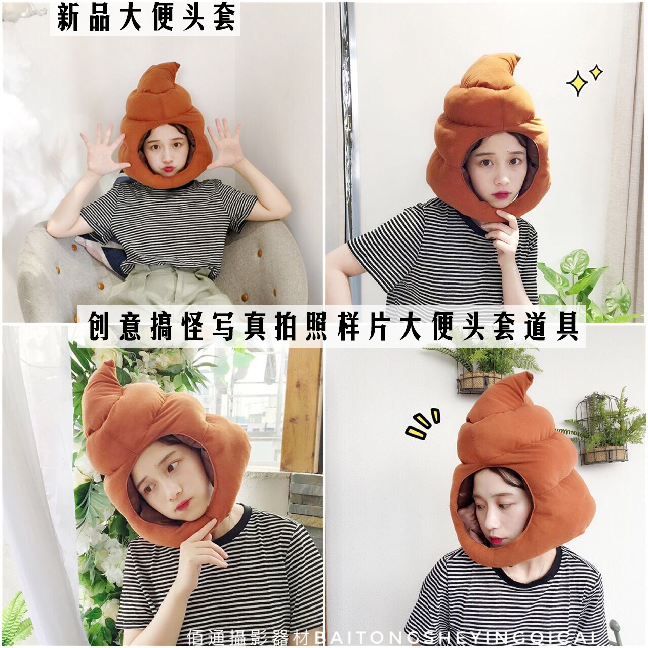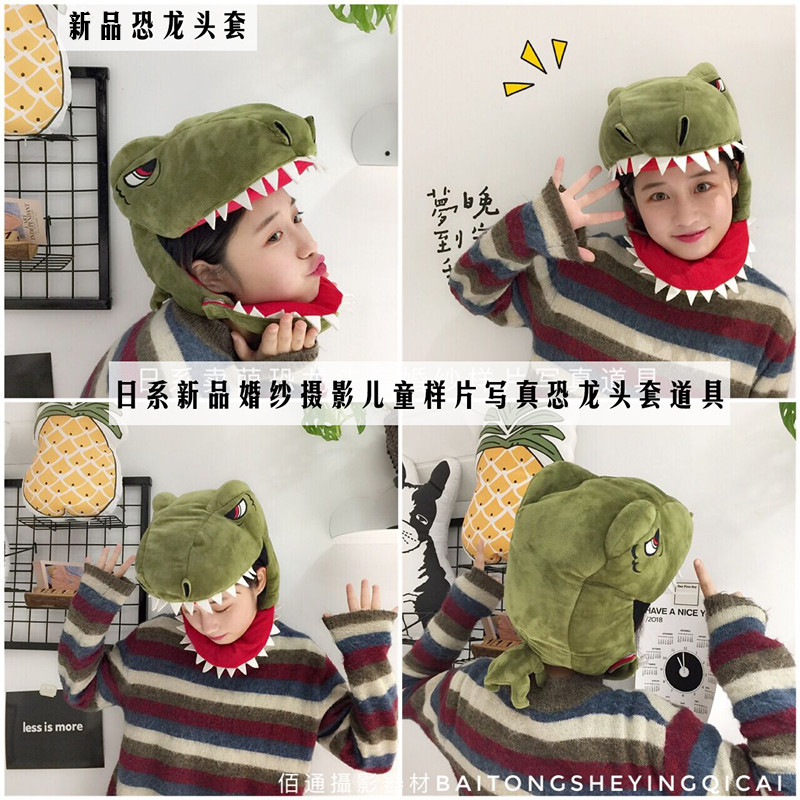 旅拍文艺情侣写真道具 兔子鲷鱼烧头套 恐龙头套影楼婚纱摄影卡通