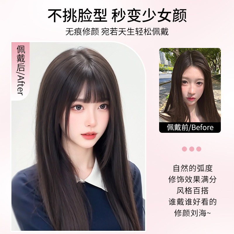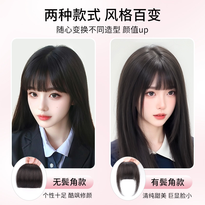 刘海假发女自然前额全真发同款漫画齐刘海假发片空气假刘海