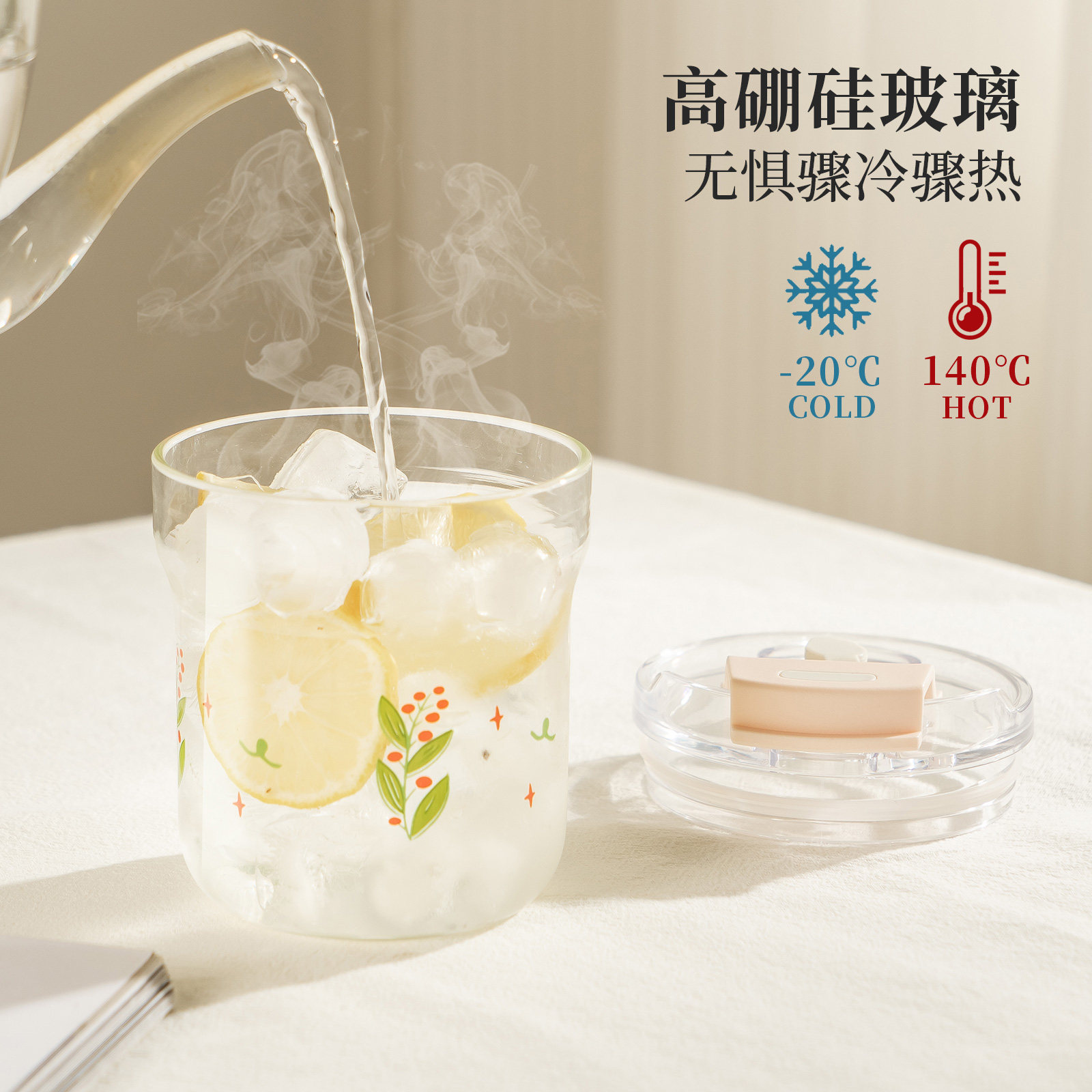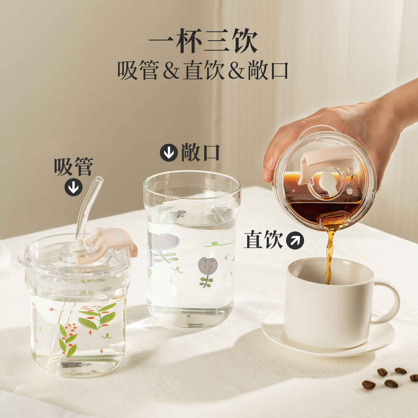 一杯三饮 高硼硅玻璃 高颜值家用水杯