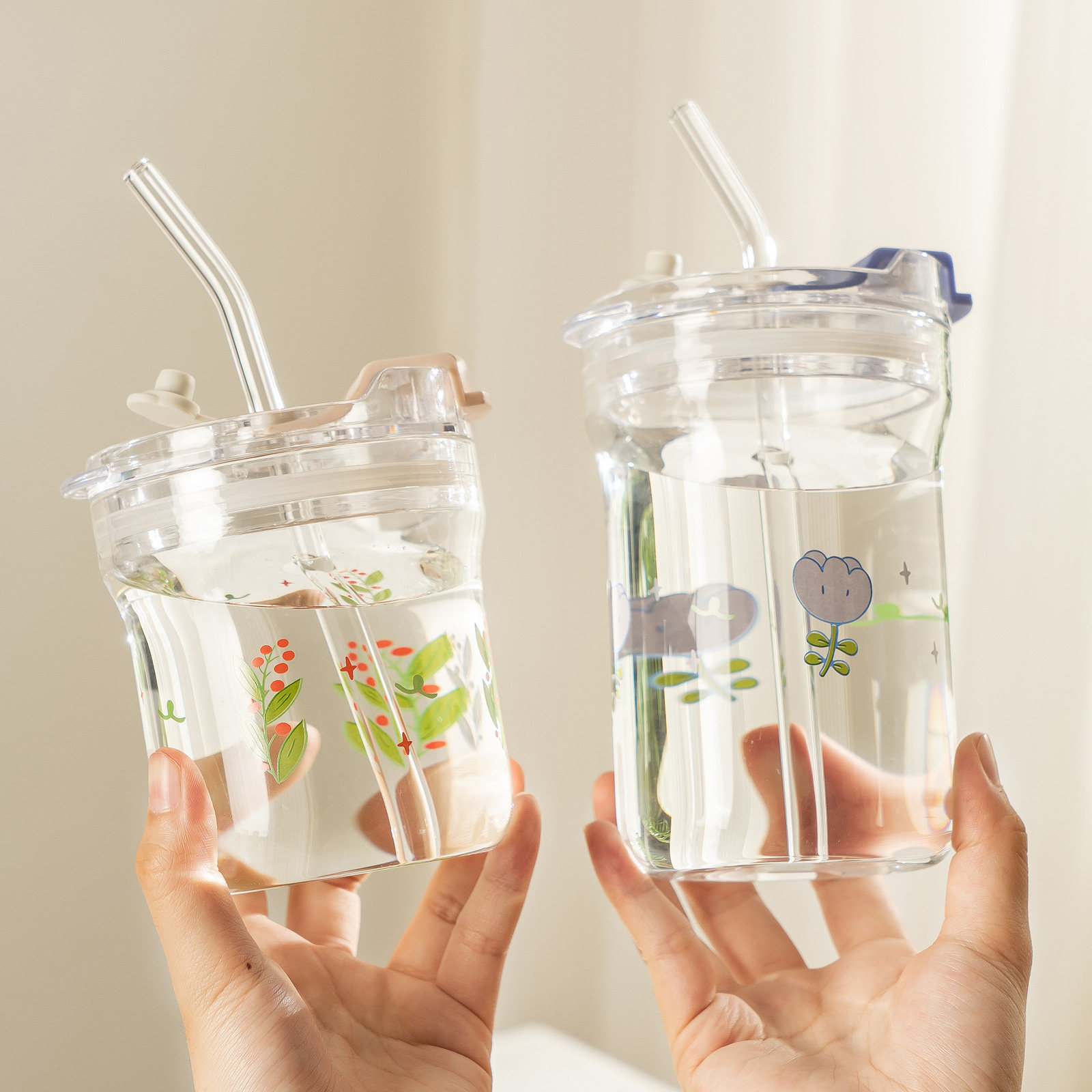 a沁楠枝玻璃杯韩版ins创意玻璃杯喝水杯子办公室学生吸管杯泡茶杯