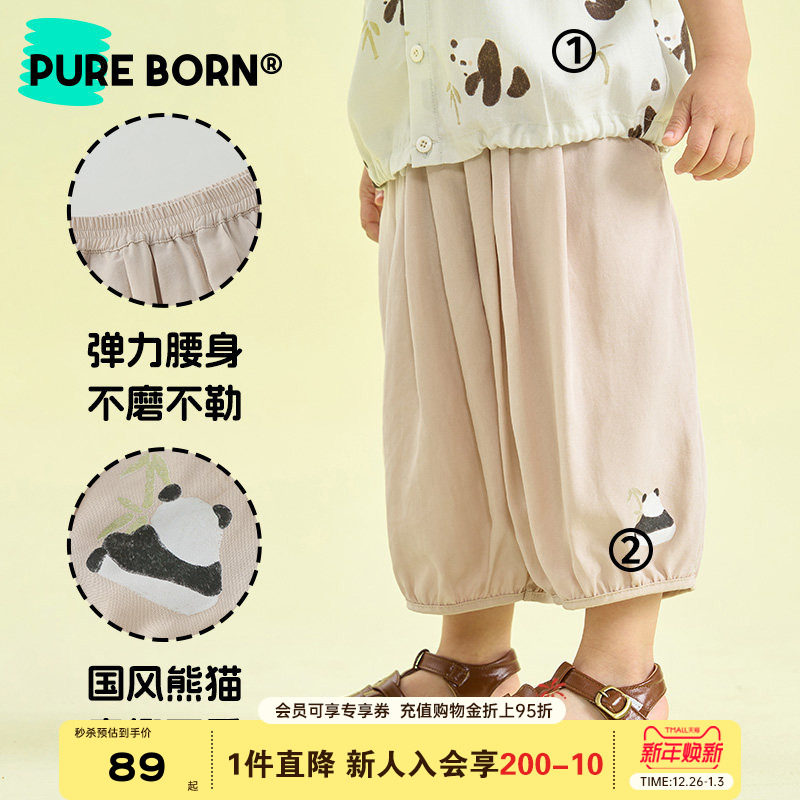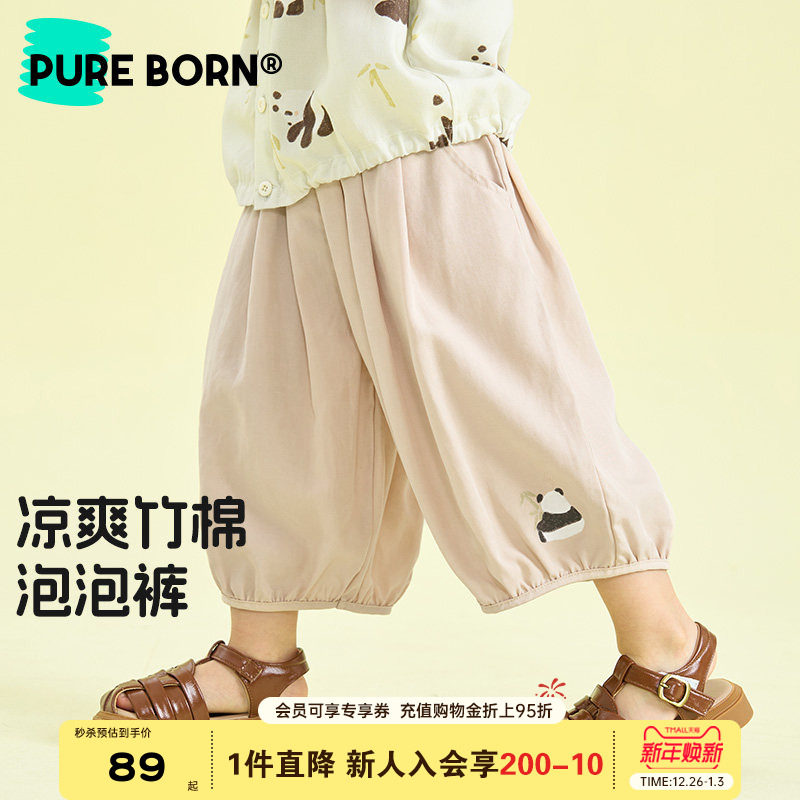 [竹棉泡泡裤]博睿恩男女宝宝国风七分裤2025夏季薄款儿童阔腿裤子