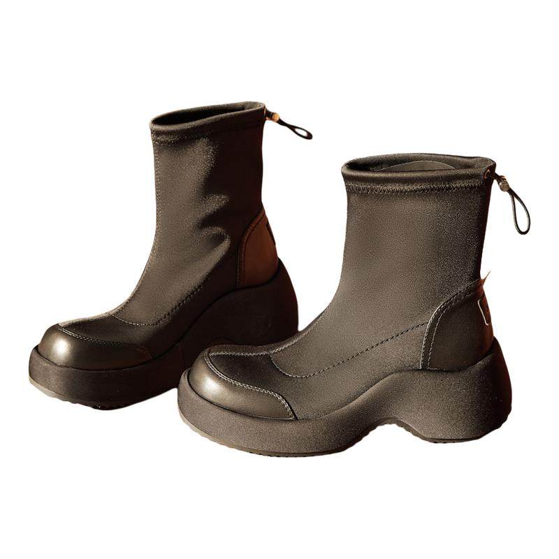 吴大叔弹力靴高跟靴子2025秋冬舒适粗跟短靴女小个子百搭瘦瘦靴