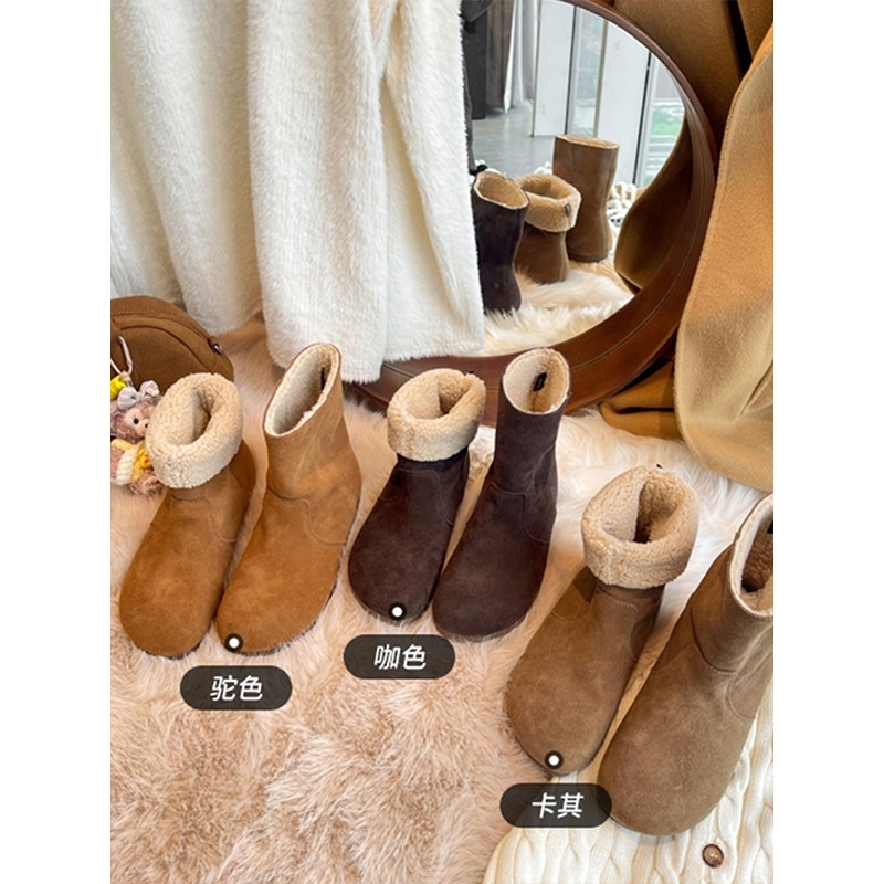 油叽叽~真皮羊毛雪地靴女冬季加绒加厚保暖棉靴厚底增高短筒靴子