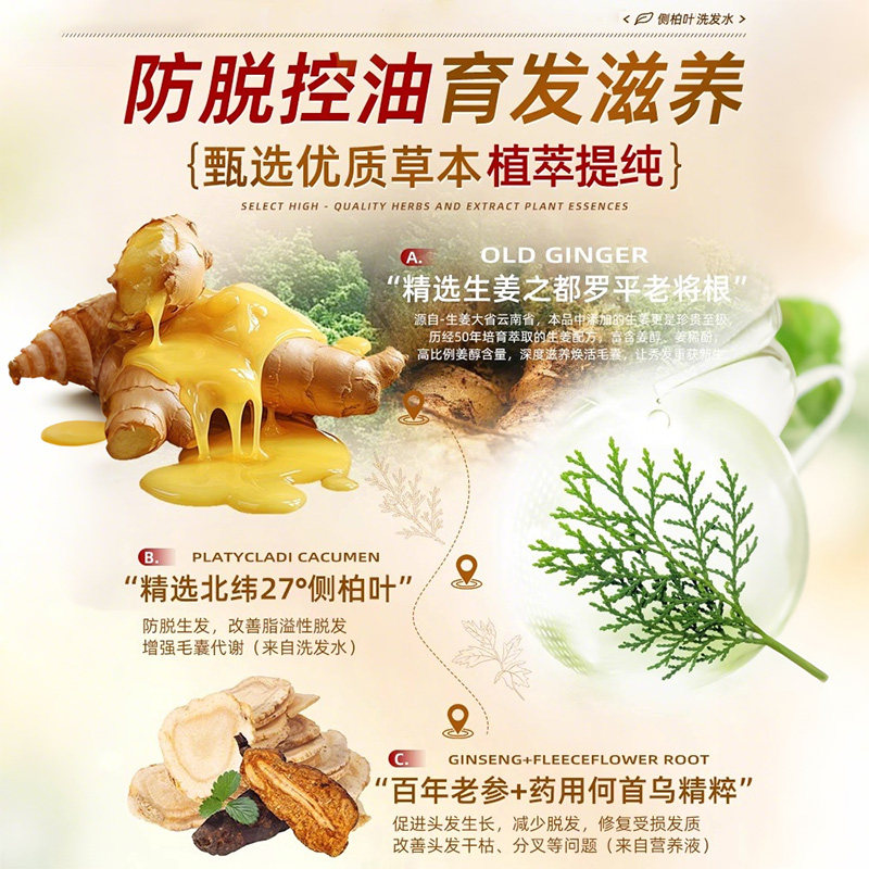 侧柏叶生姜中药材洗发水控油蓬松去屑止痒非防脱生育发正品洗头膏