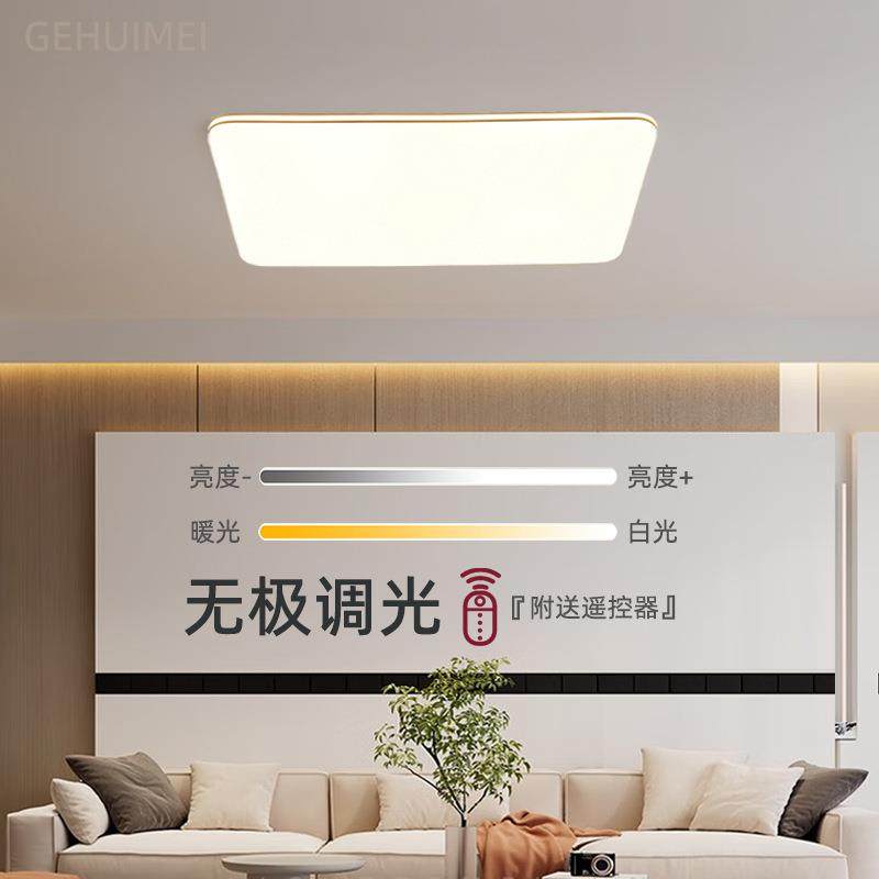 轻奢金边客厅灯长方形环绕侧发光餐厅灯无极调光智能控制95cm大灯