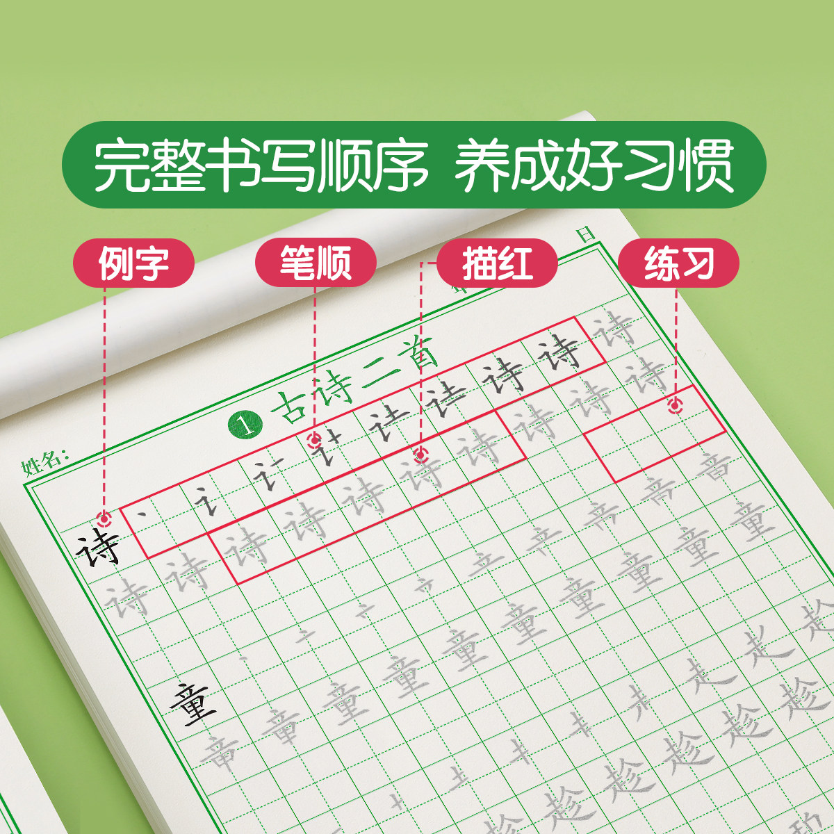 一年级二年级字帖练字小学生专用上下册同步点阵训练字帖三四五六年级钢笔练字帖每日一练人教版语文笔画笔顺专用练字本楷书写字帖