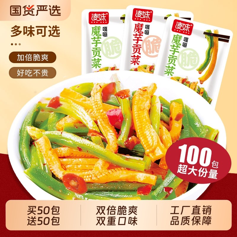 凌妹魔芋贡菜开袋即食下饭菜香辣网红休闲小吃零食解馋辣味小包装