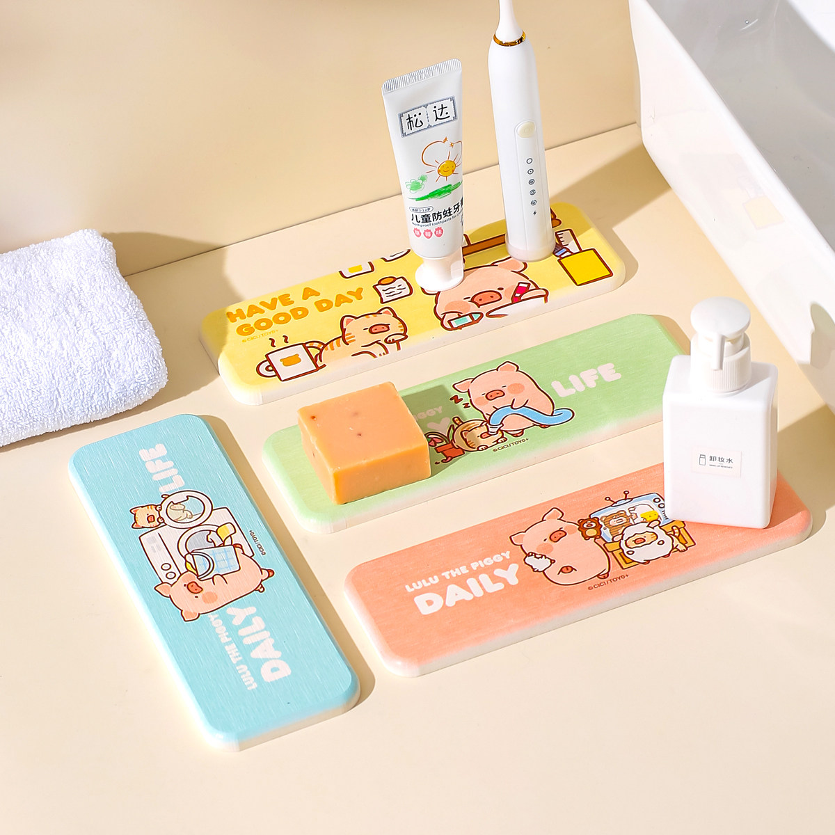 川岛屋&lulu猪联名 硅藻泥吸水垫洗手台垫多功能台面肥皂吸水杯垫