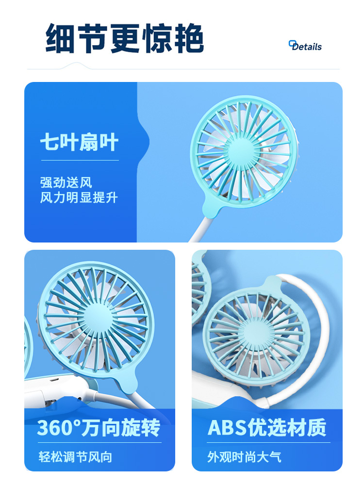 挂脖风扇便携式随身挂颈懒人穿戴头戴式挂脖子小风扇usb充电降温神器折叠学生宿舍夏季户外可爱静音厨房桌面